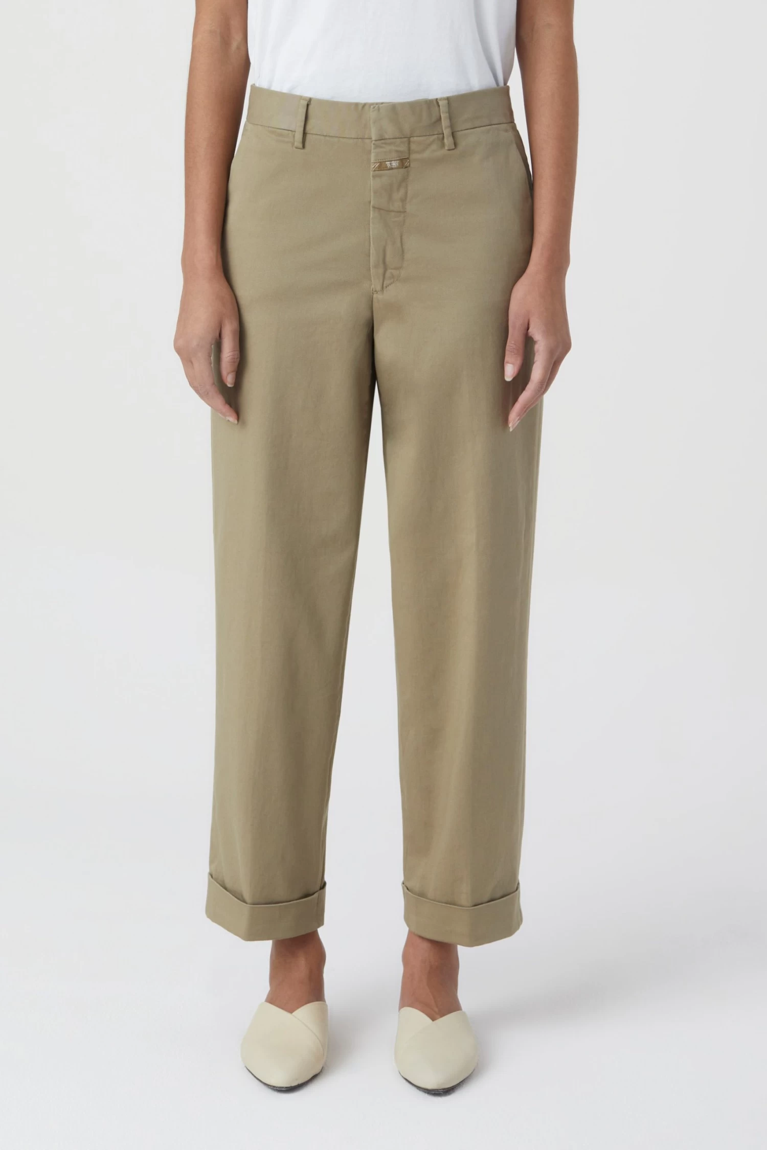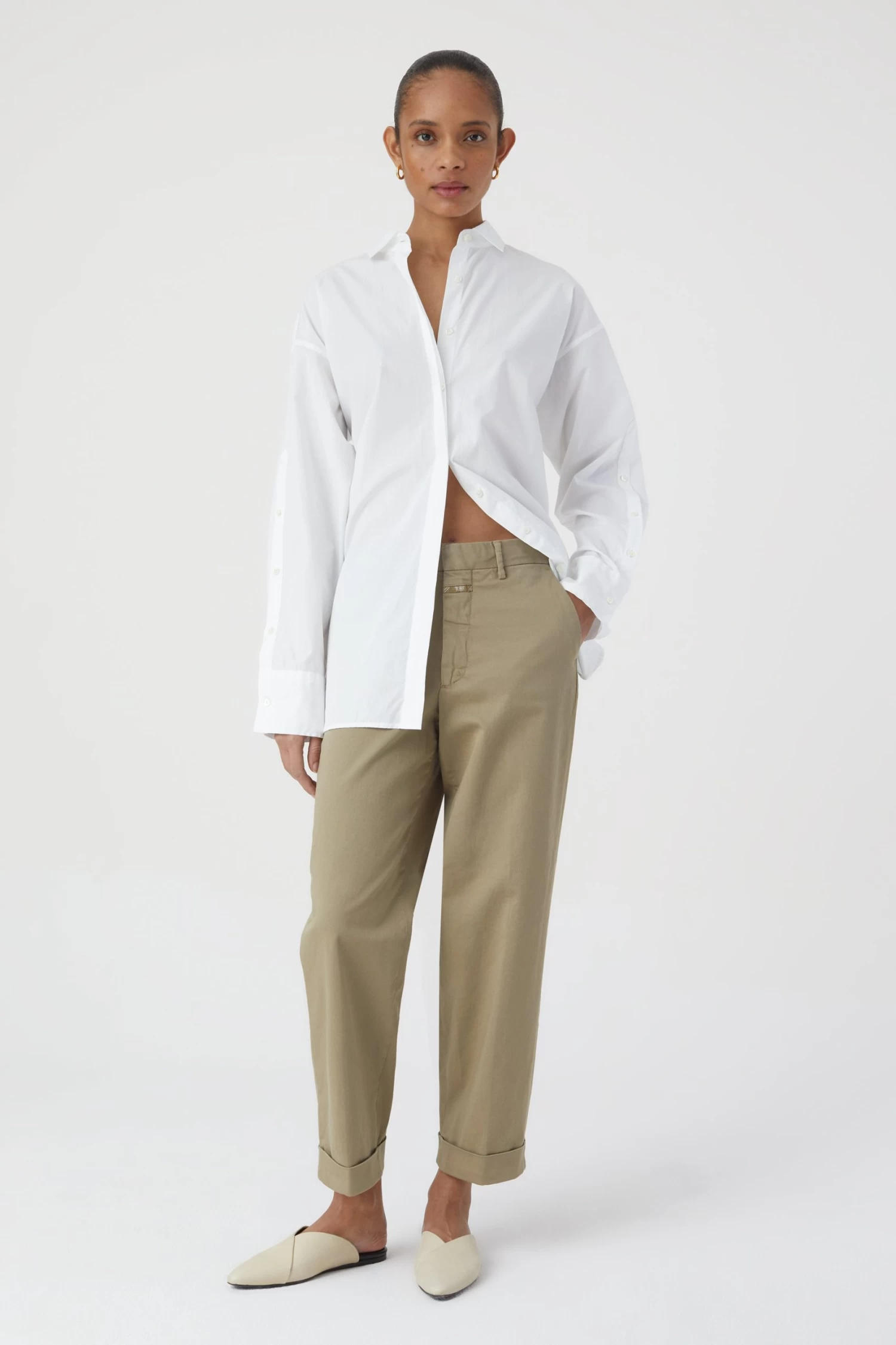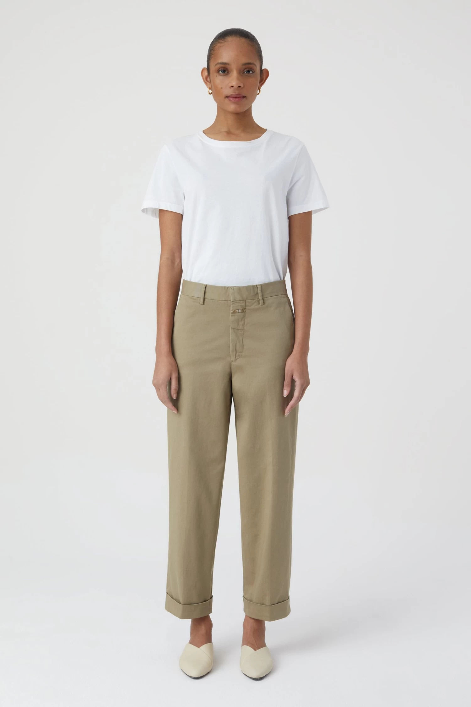 New Relaxed Fit mit hohem Bund und geradem Bein in verkürzter Länge sowie mit seitlichen Eingrifftaschen, fixiertem Turn-up-Saum und Leistentaschen auf der Rückseite. Gefertigt aus leichter Qualität mit cleaner Optik.