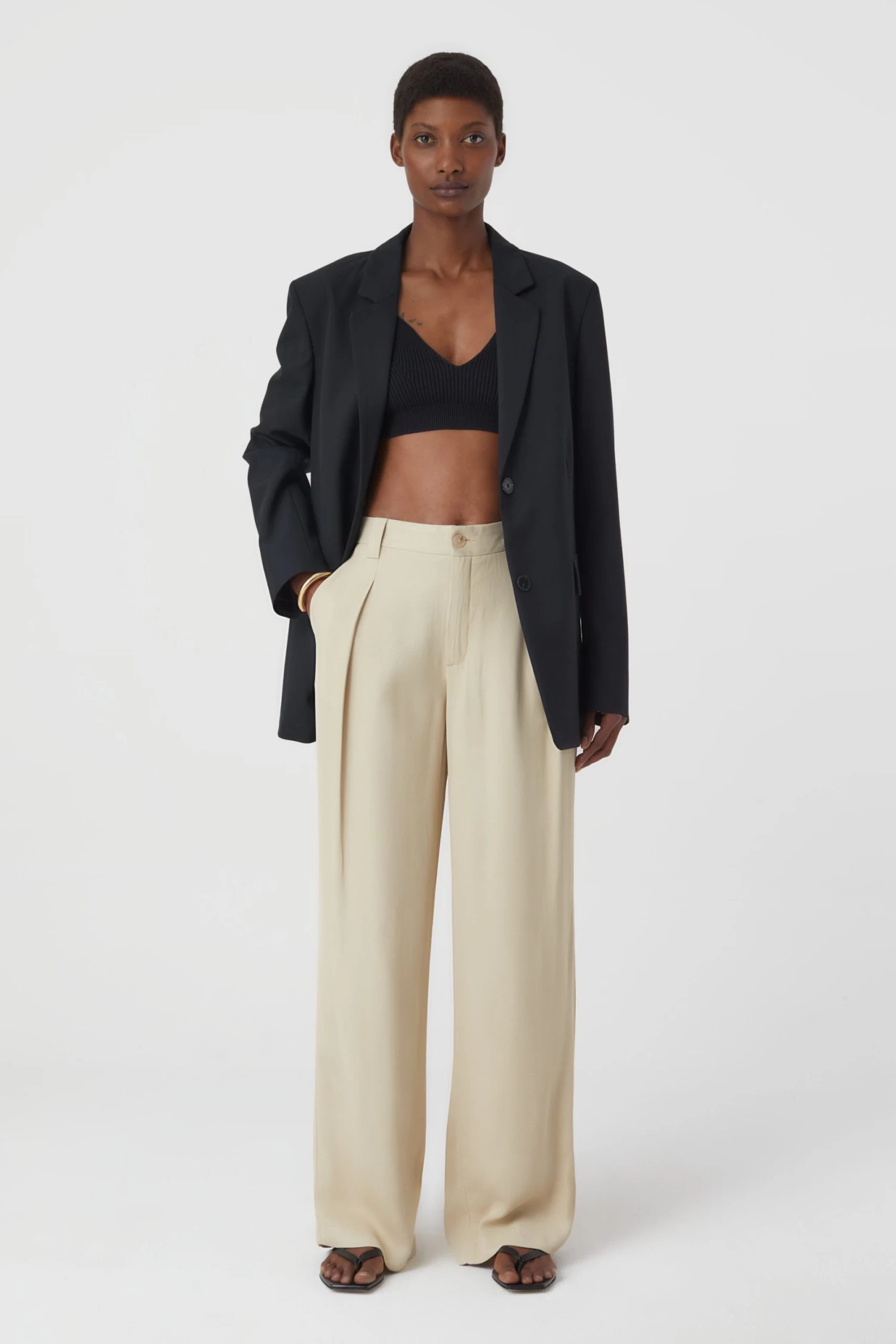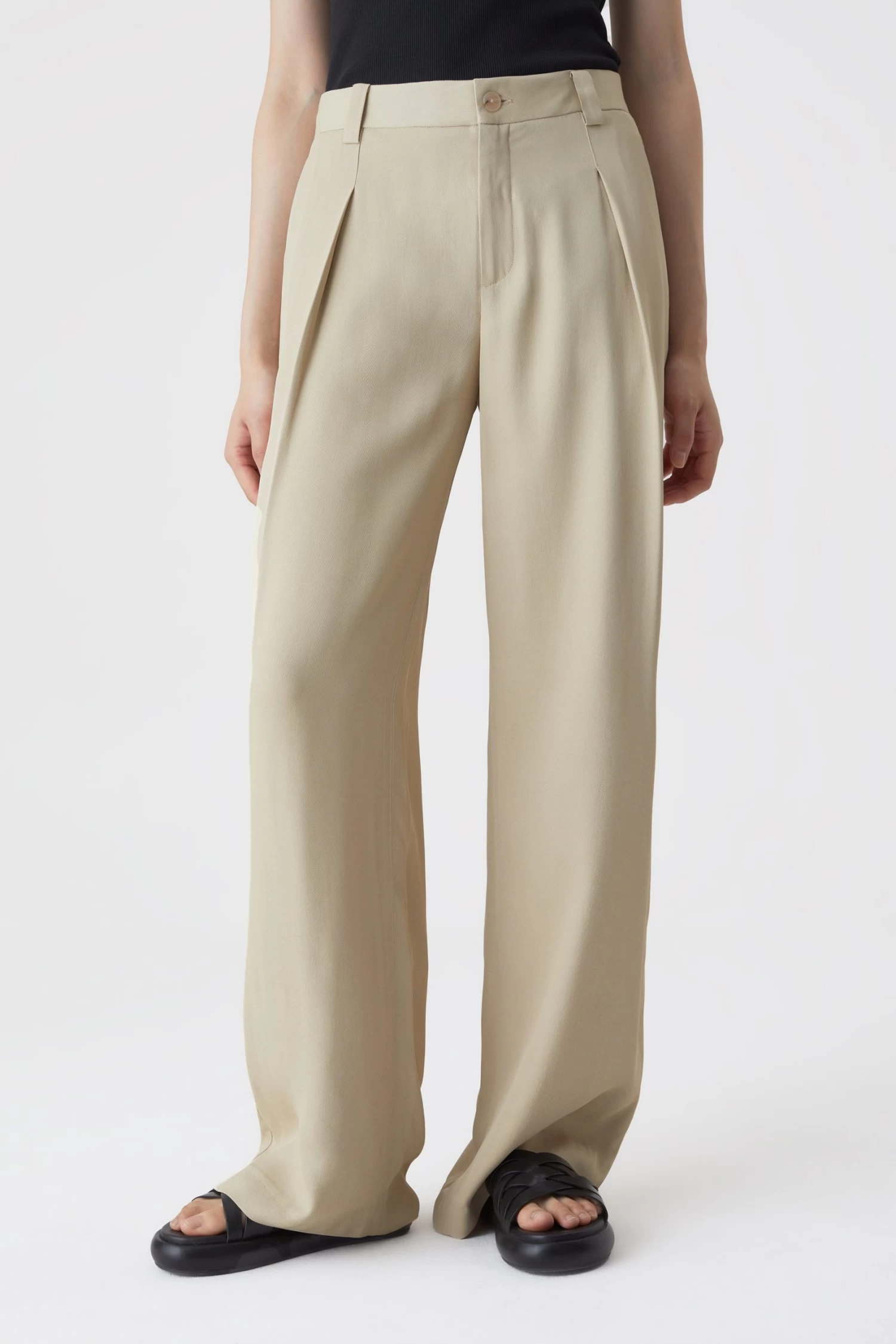New Relaxed Fit aus sehr leichtem und fließendem Twillstoff mit kühler Haptik. Style Brooks mit breitem Bund und Bundfalten, seitlichen Eingrifftaschen sowie Leistentaschen auf der Rückseite.