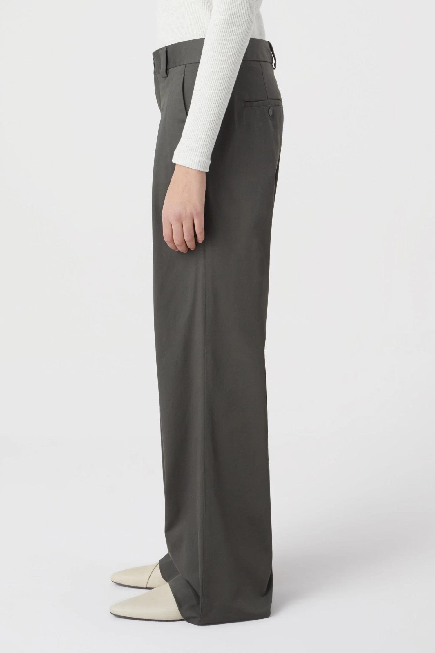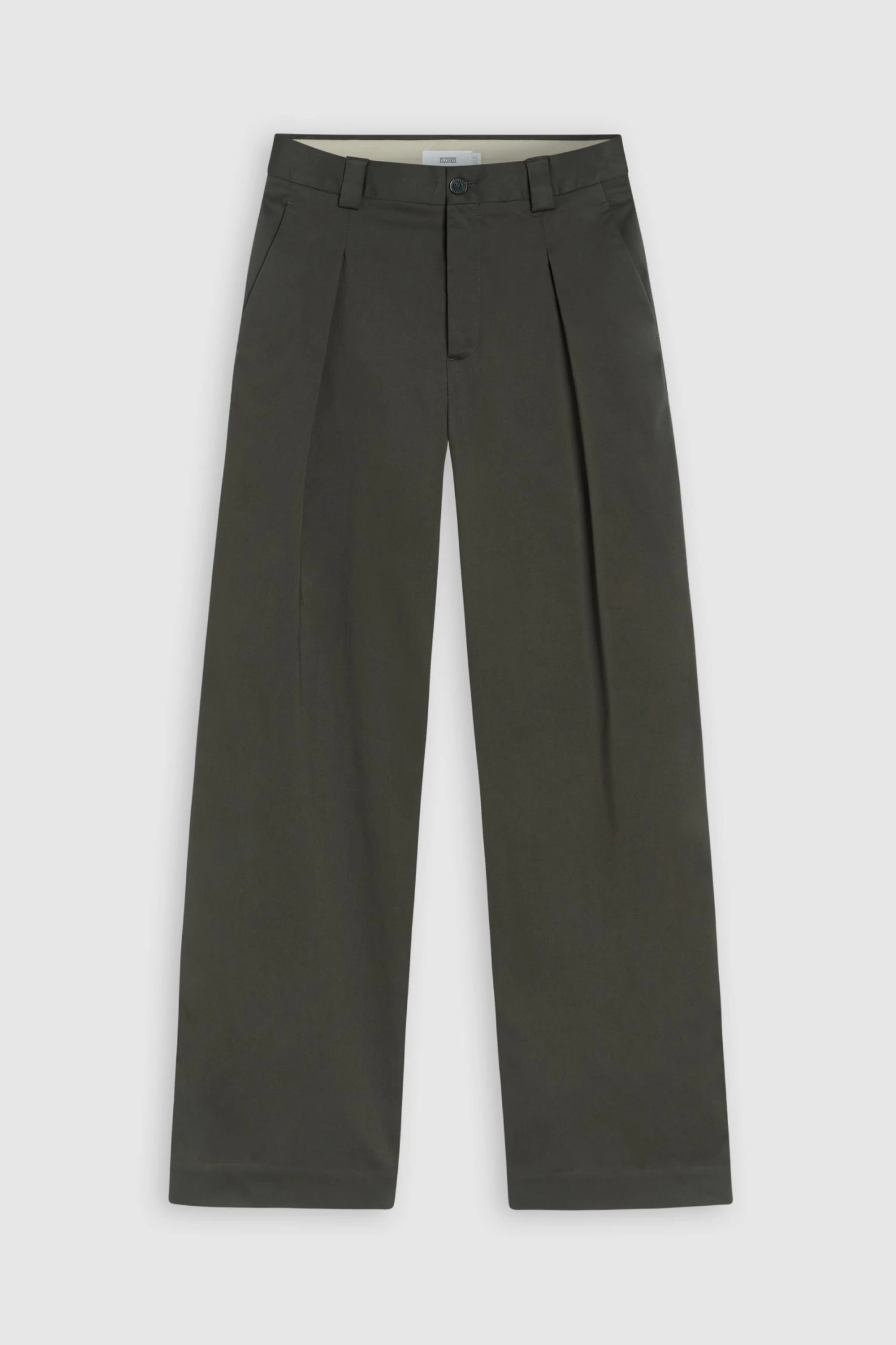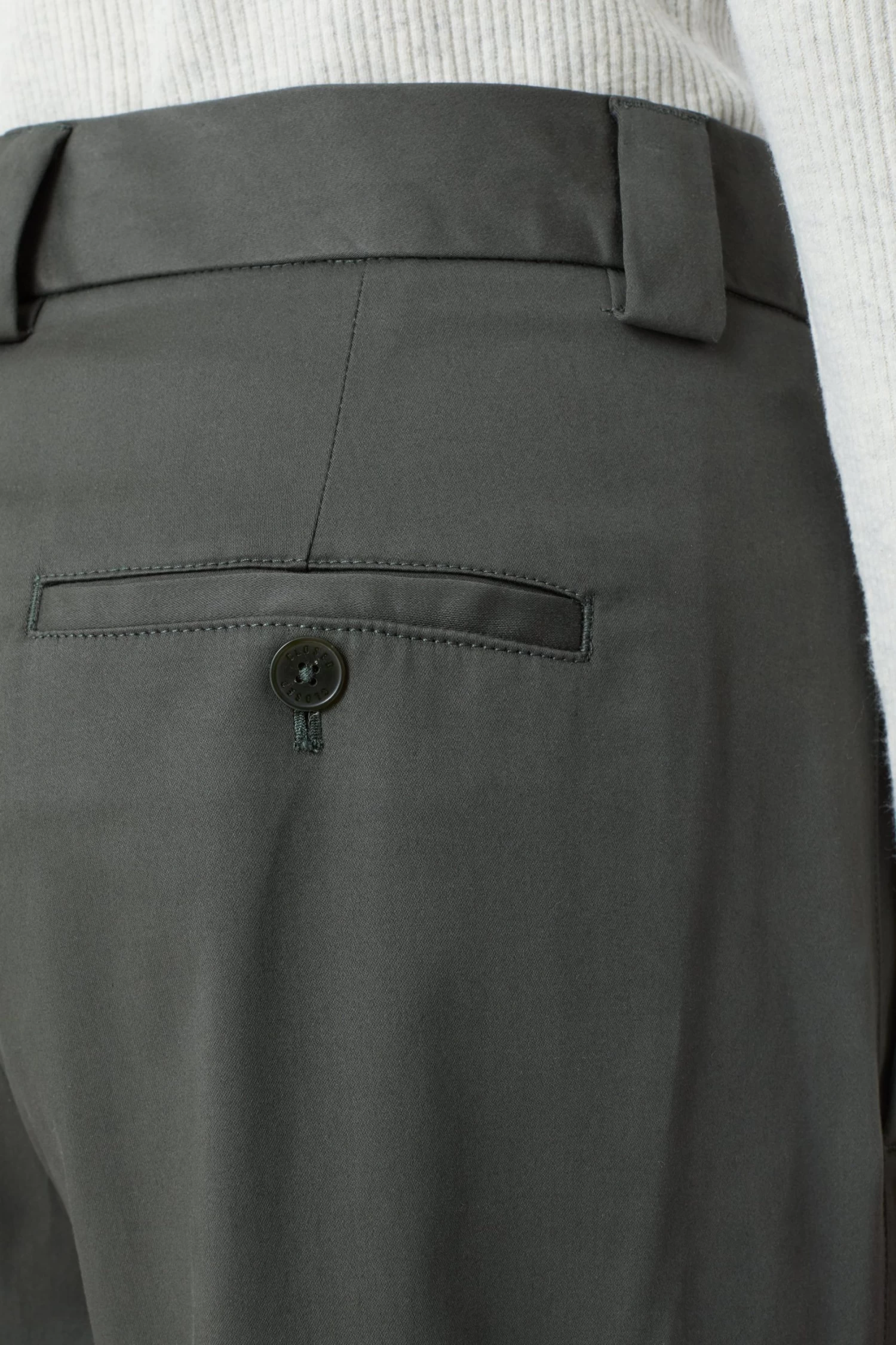 New Relaxed Fit aus leicht glänzendem Sateen-Stretch mit Lyocell und Elasthan – cleane Qualität mit weicher Haptik. Style Brooks mit semi-transparenten Knöpfen in Horn-Optik, Bundfalten, seitlichen Eingrifftaschen und geknöpften Taschen auf der Rückseite.