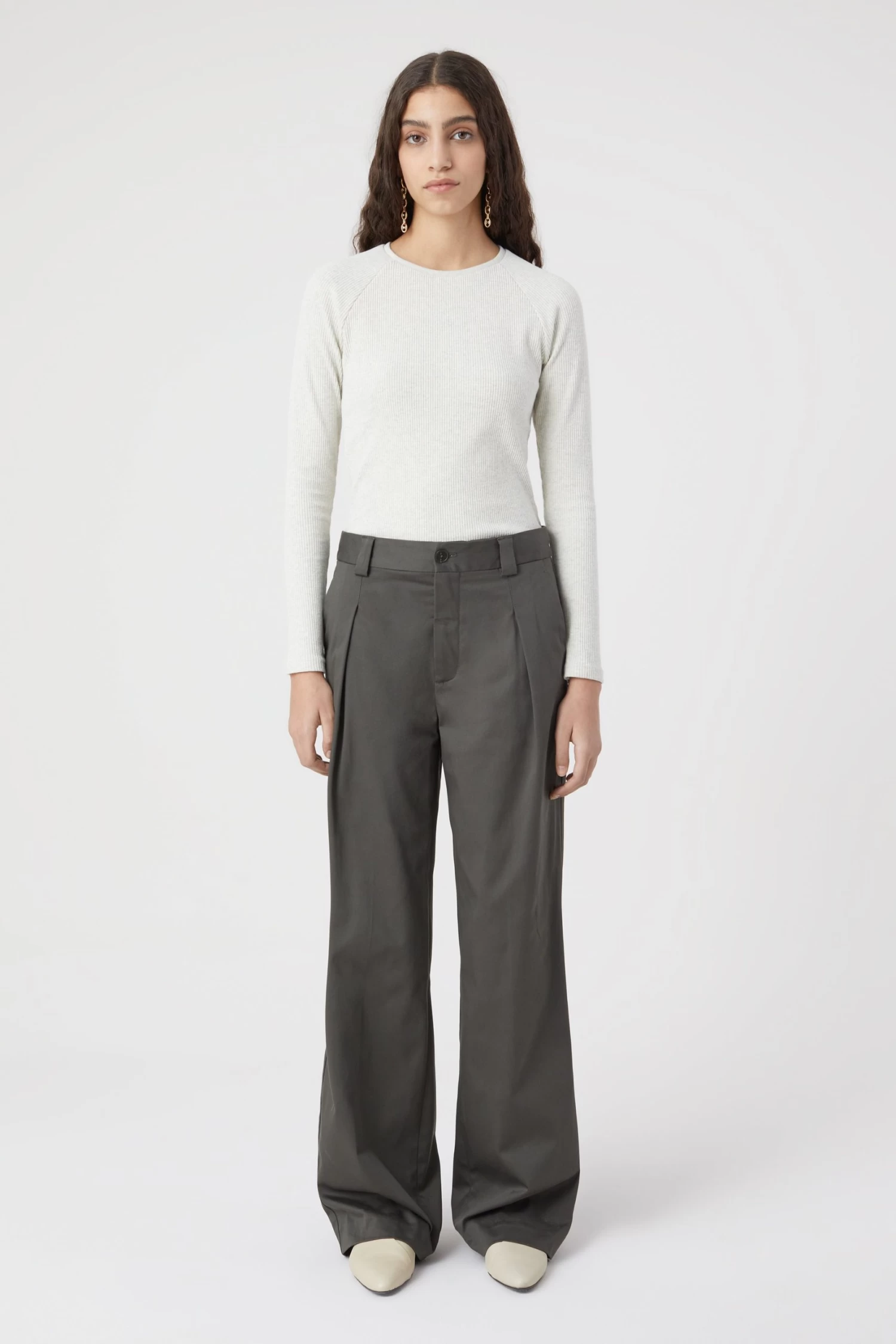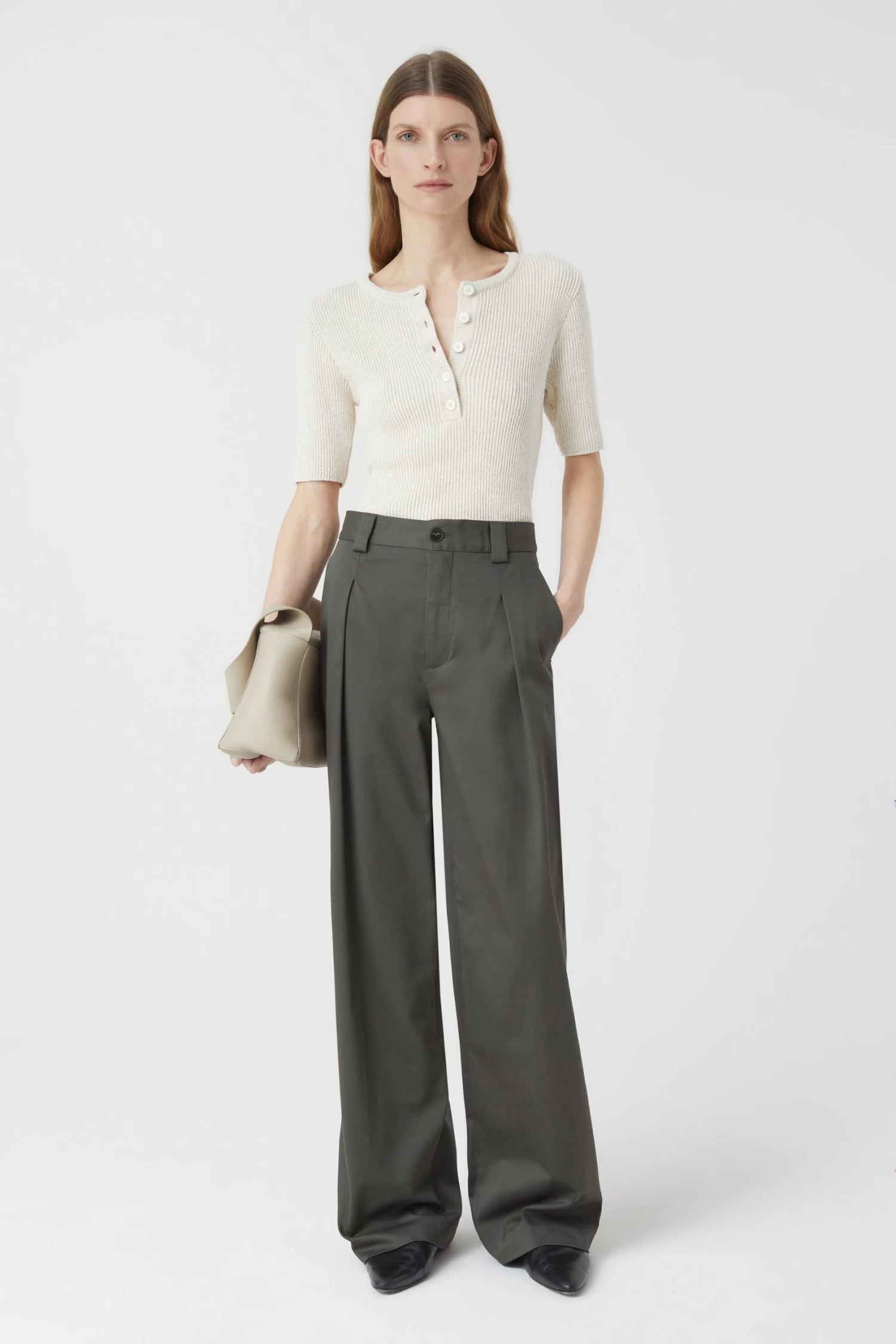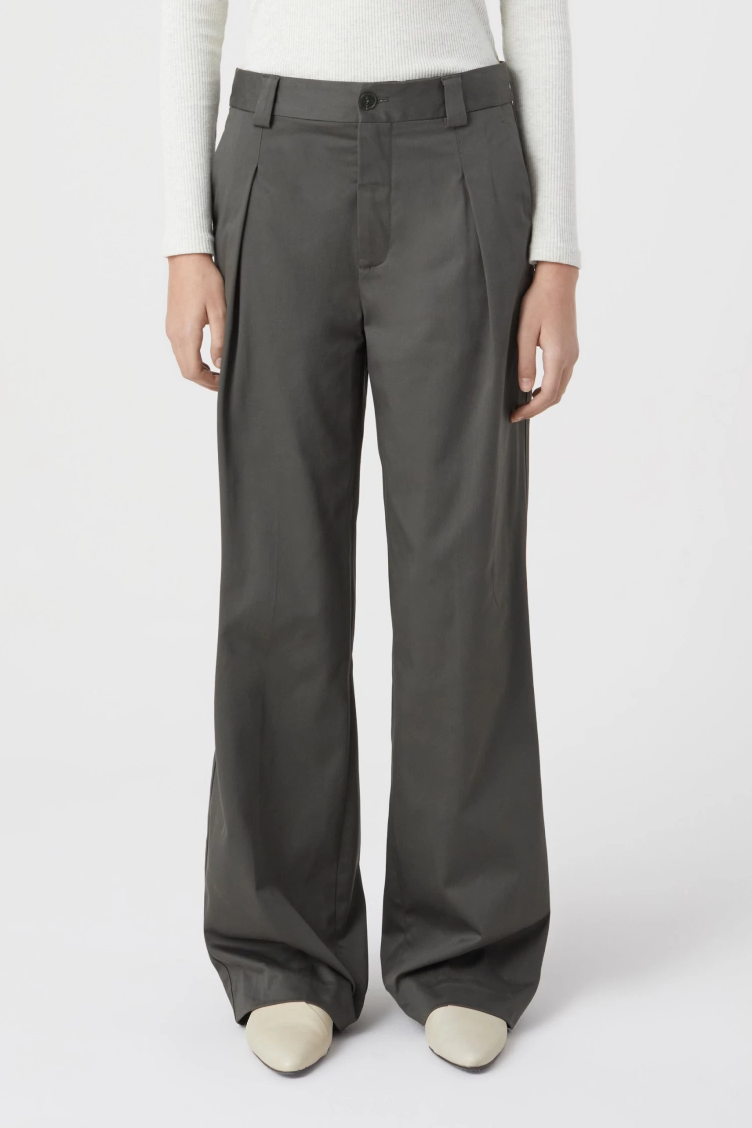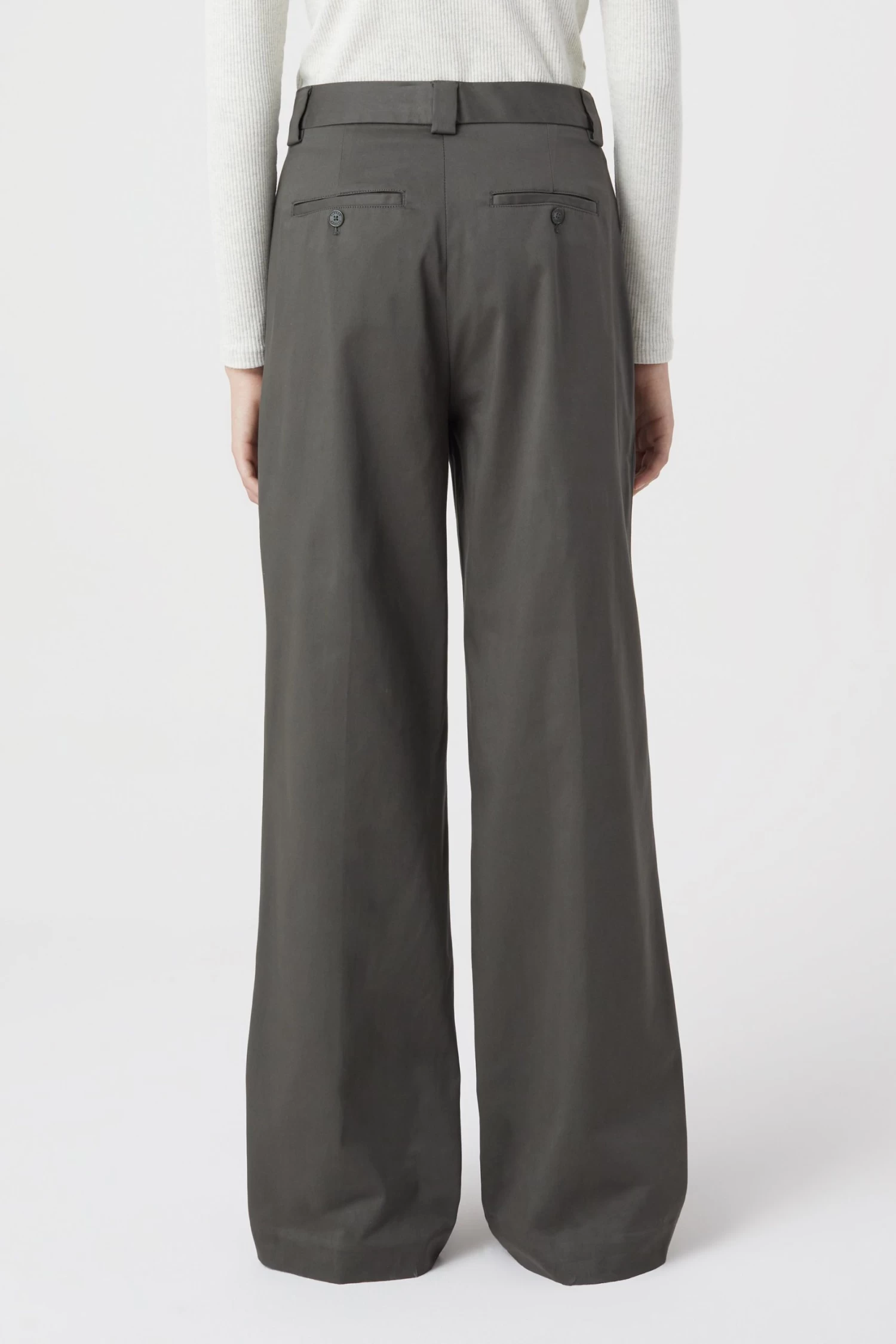 New Relaxed Fit aus leicht glänzendem Sateen-Stretch mit Lyocell und Elasthan – cleane Qualität mit weicher Haptik. Style Brooks mit semi-transparenten Knöpfen in Horn-Optik, Bundfalten, seitlichen Eingrifftaschen und geknöpften Taschen auf der Rückseite.