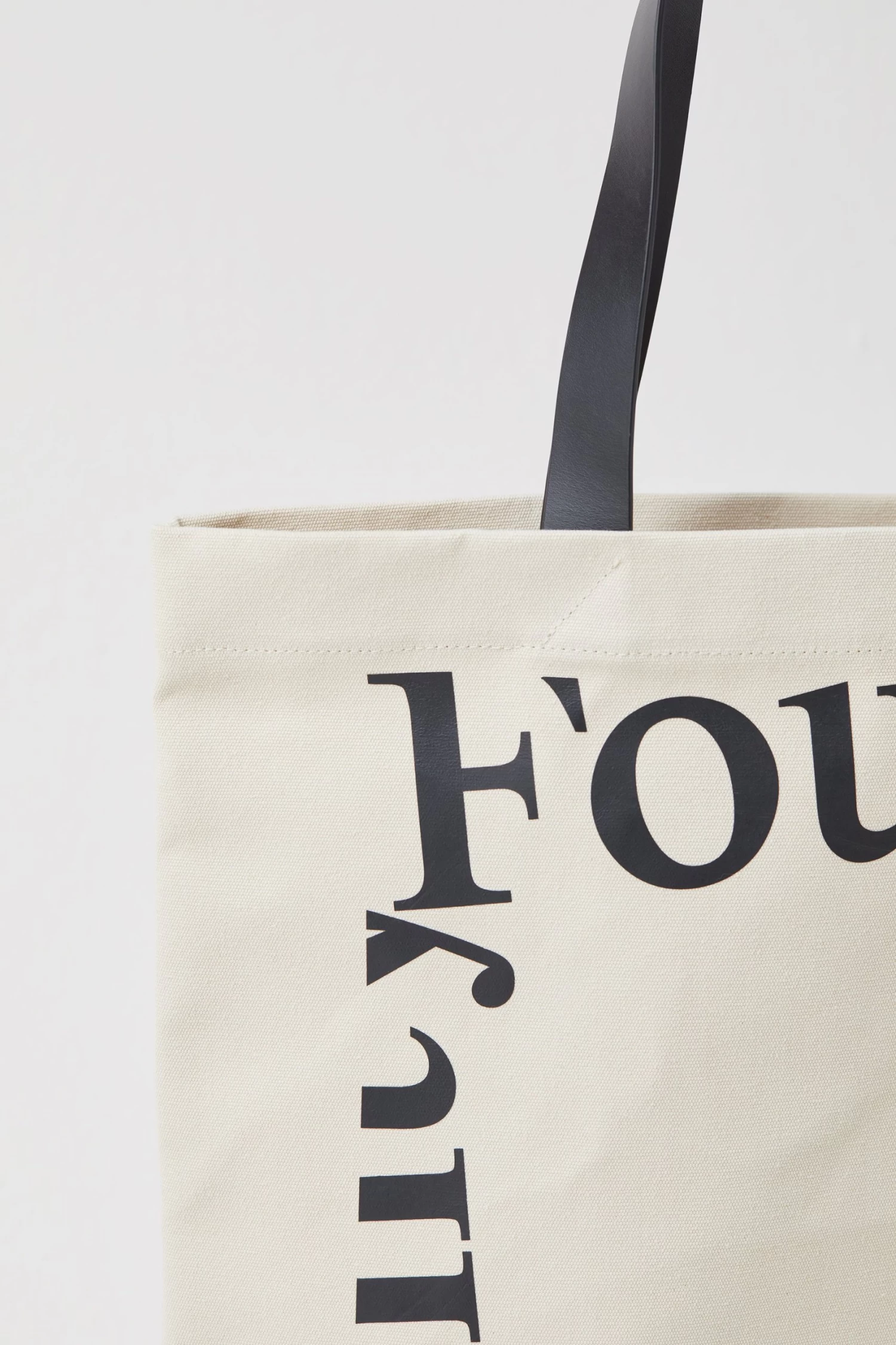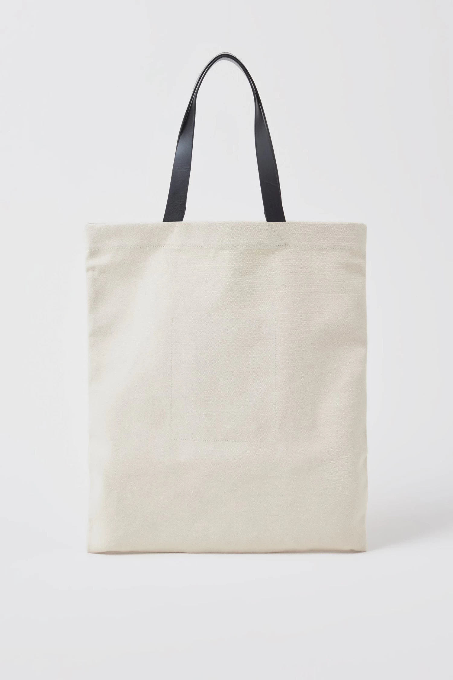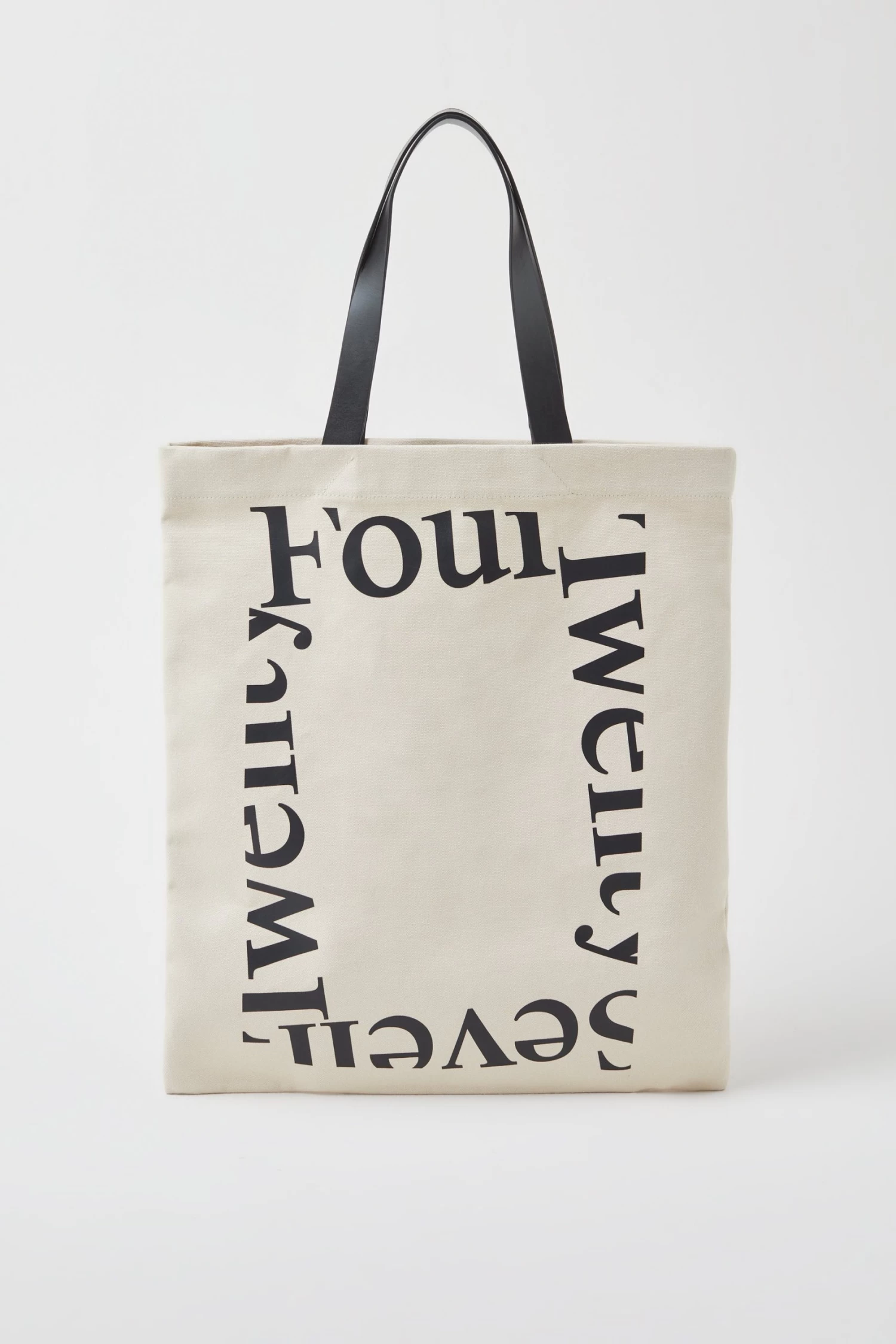 Closed-Logo-Bag aus kräftigem Canvas mit schwarzen Lederriemen und Ledersteckfach innen sowie mit Closed 24/7-Print. Gefertigt bei unserem Partnerbetrieb Daro’s in Portugal.