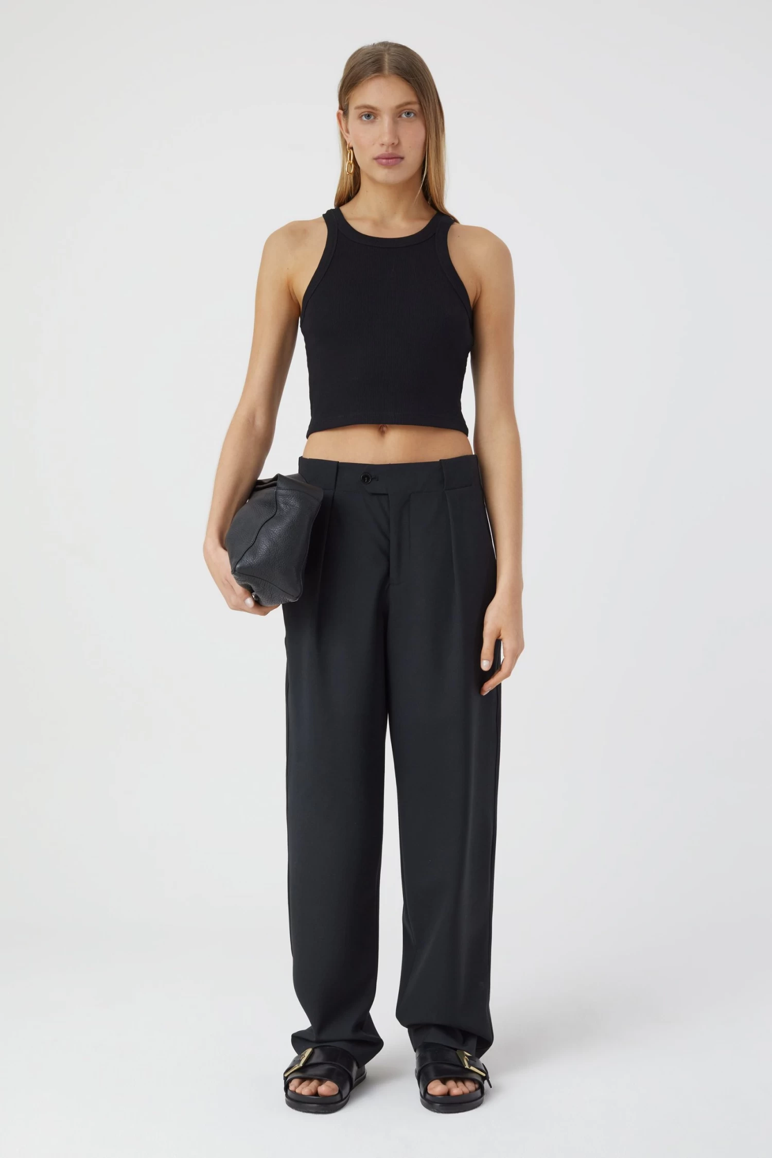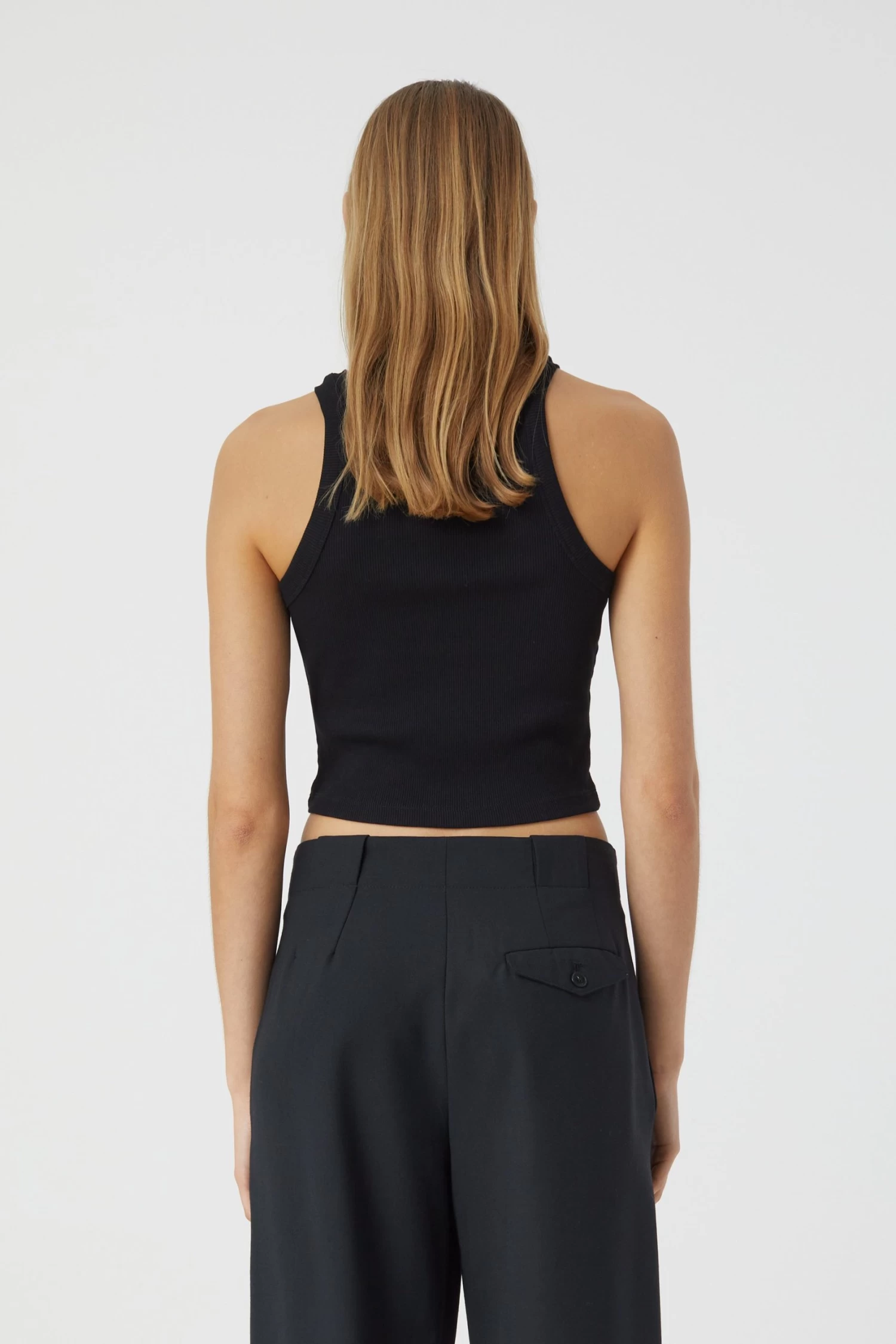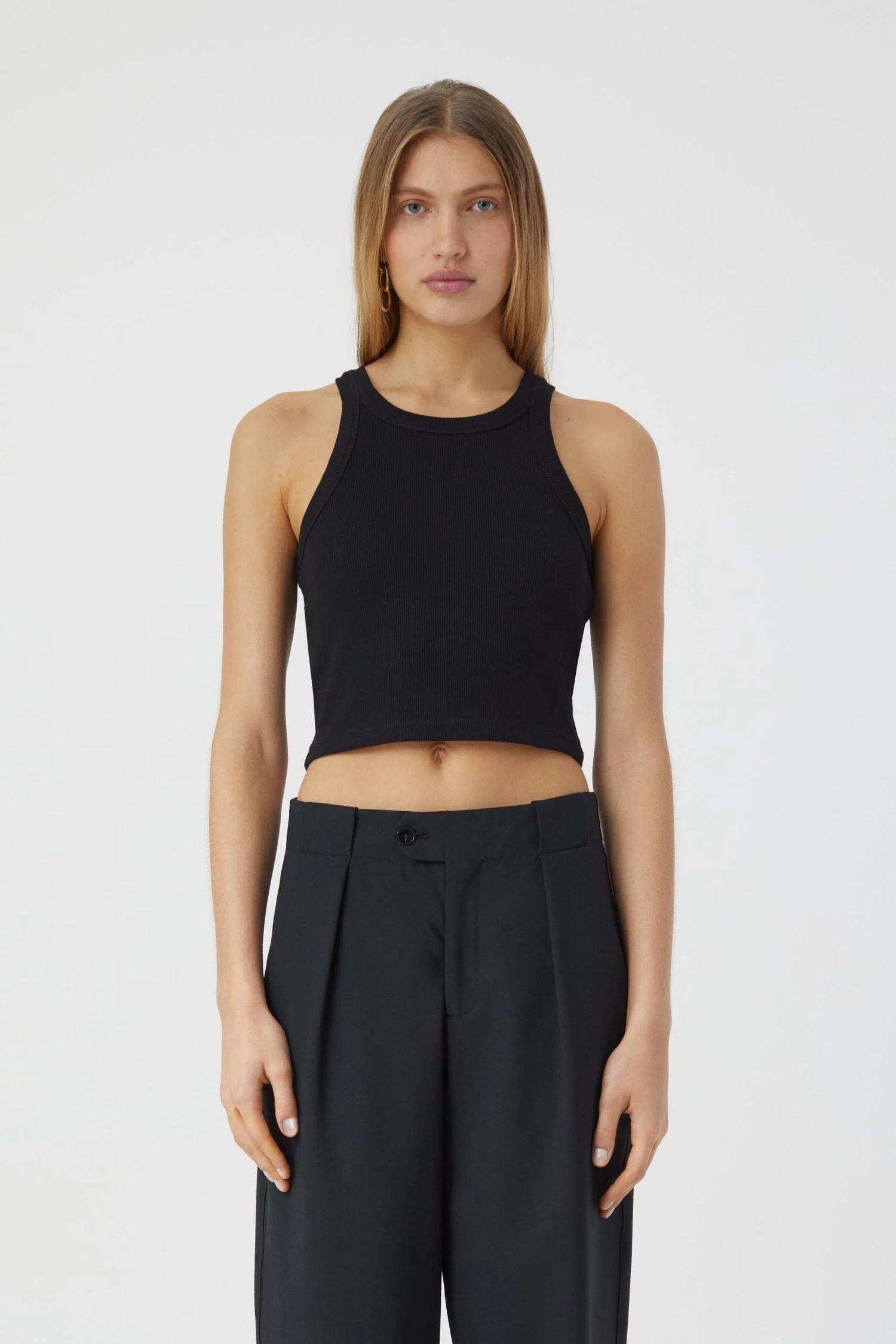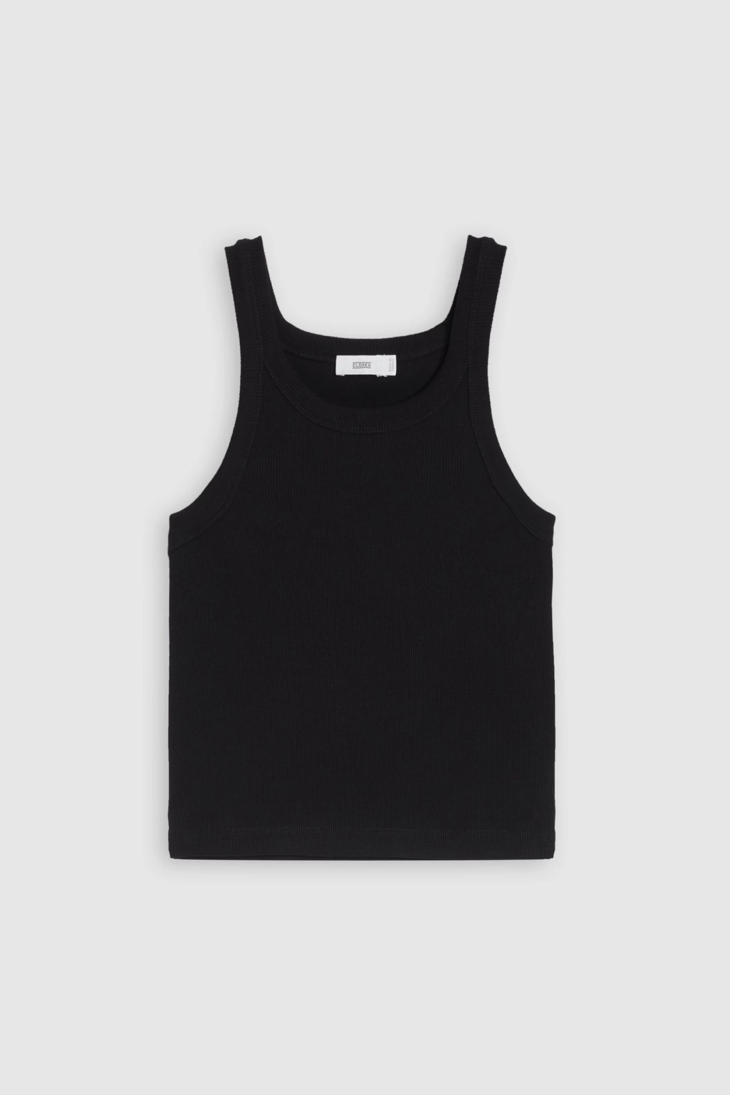 Cropped Slim Fit aus reiner Bio-Baumwolle mit Stretch-Anteil und weichem Griff: Geripptes Tanktop mit schmalen Trägern, Rundhalsausschnitt und geradem Saumabschluss.