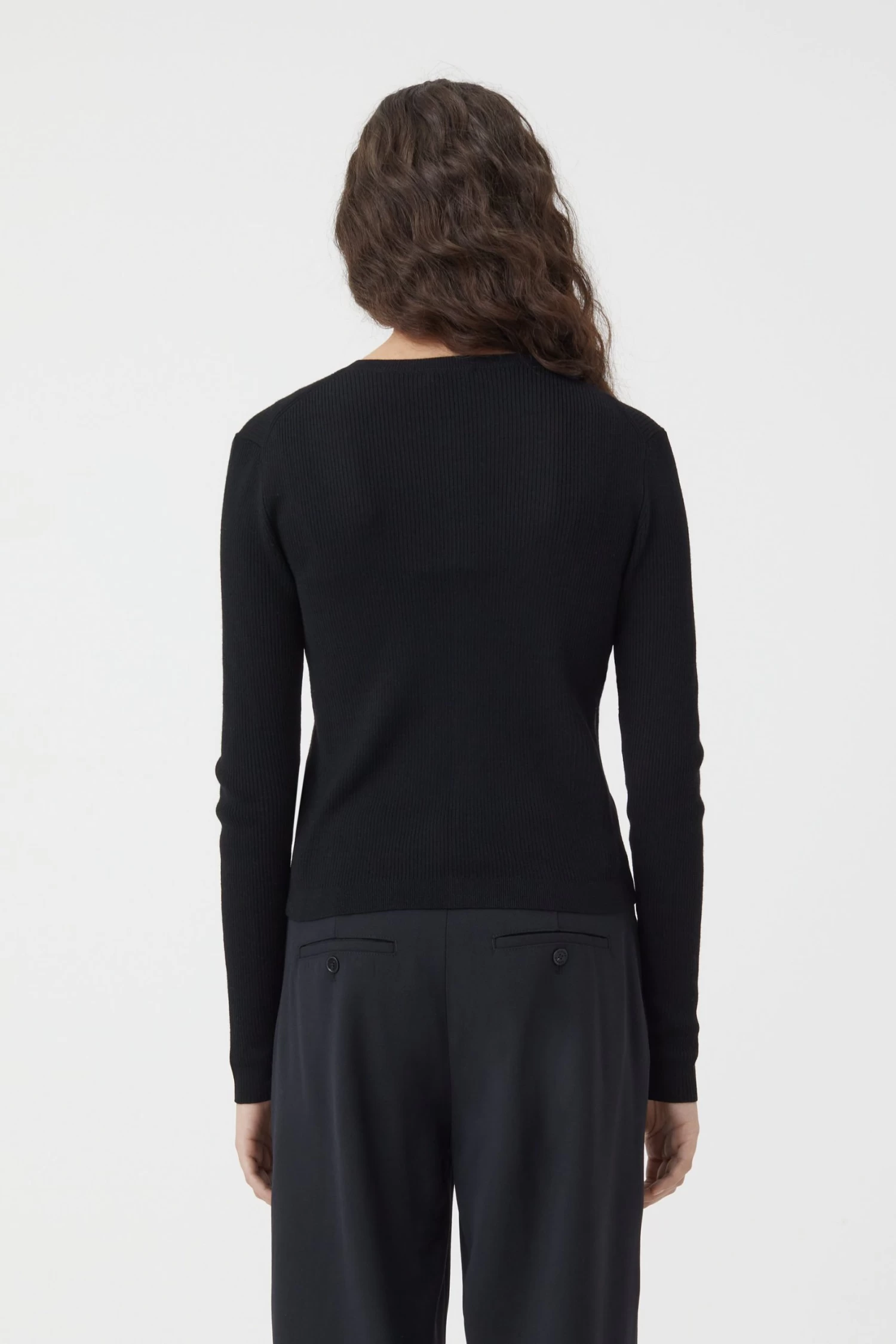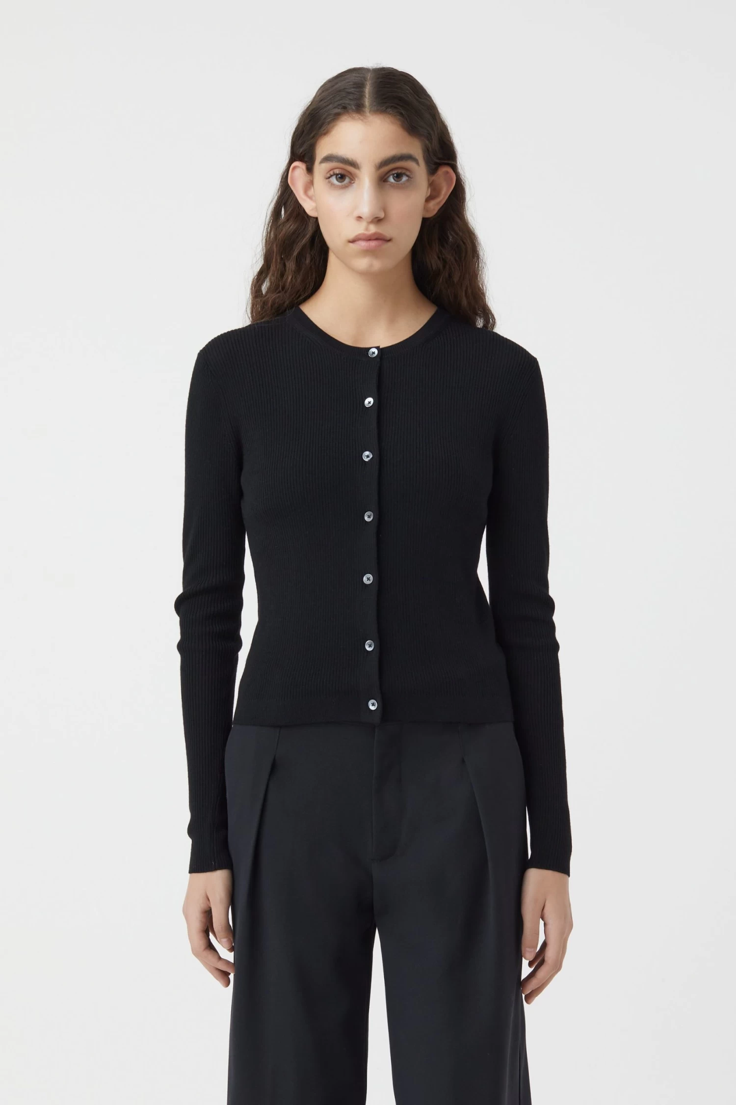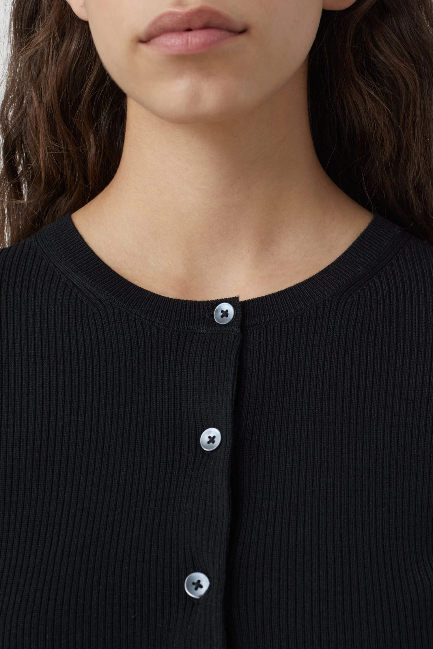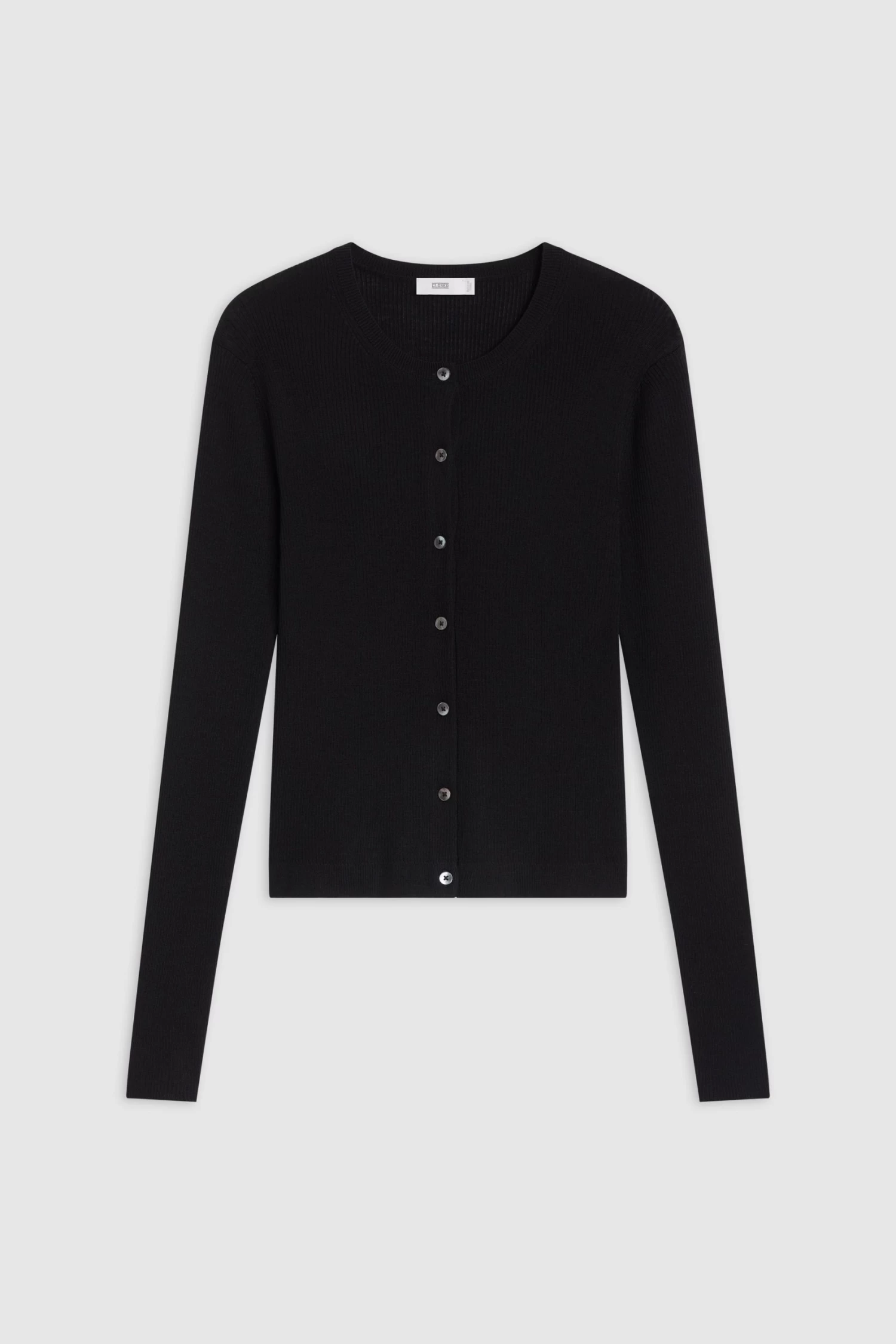 Cardigan im Slim Fit aus leichter und weicher Bio-Merinowolle im feinen Rippstrick. Mit Rundhalsausschnitt, gerader Knopfleiste und Perlmuttknöpfen sowie mit Kontrast-Details auf der Rückseite.