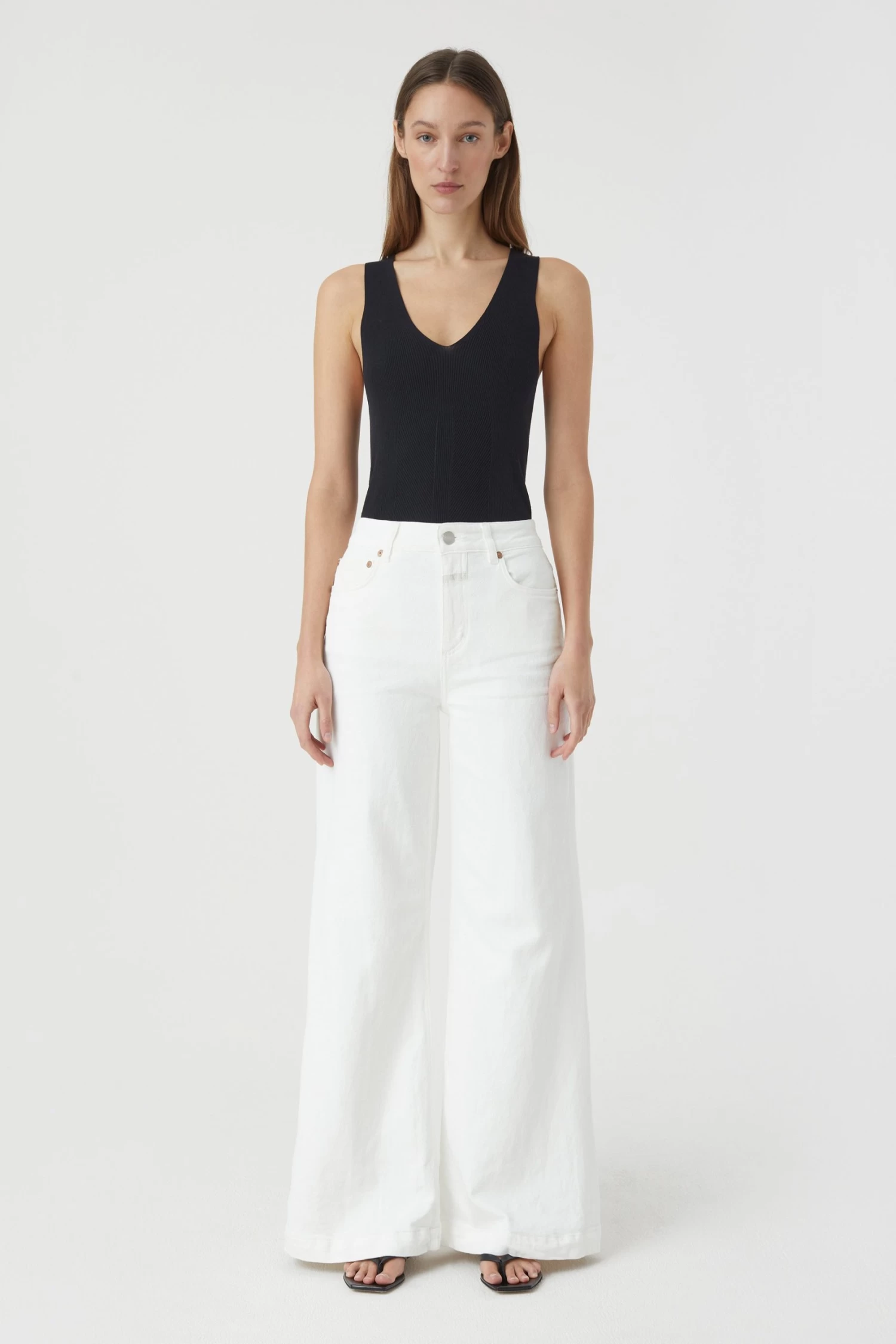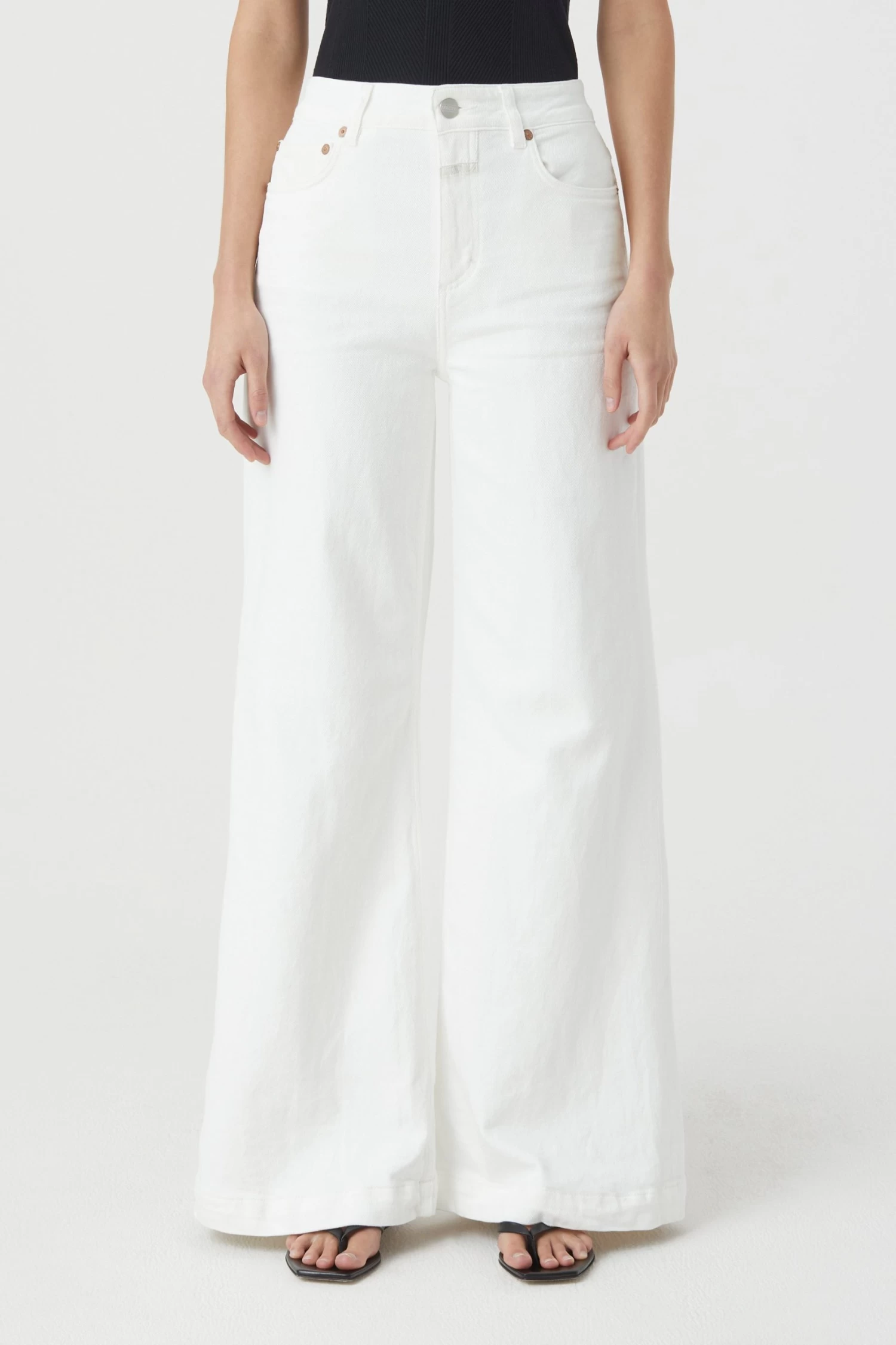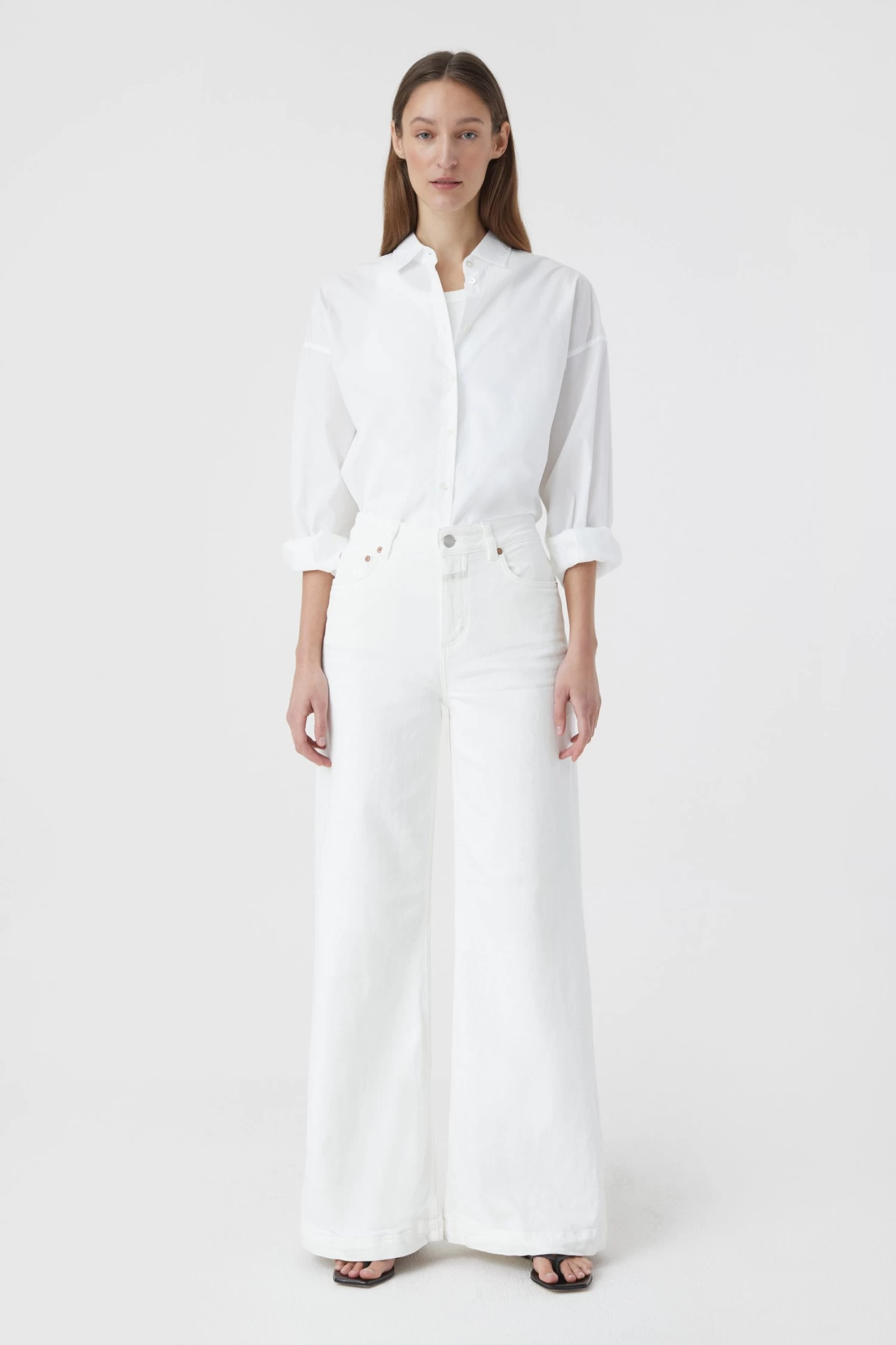 Gefertigt aus italienischem Comfort Stretch Denim mit recycelter Baumwolle – weich fallender Open-Weave-Denim mit prägnanter Struktur und softer Haptik. Style Glow-up im Wide Fit mit hohem Bund.