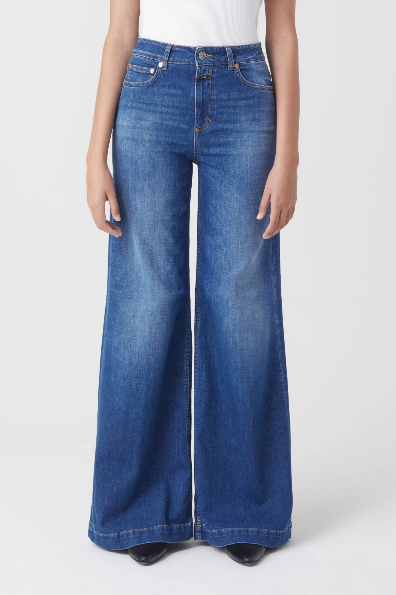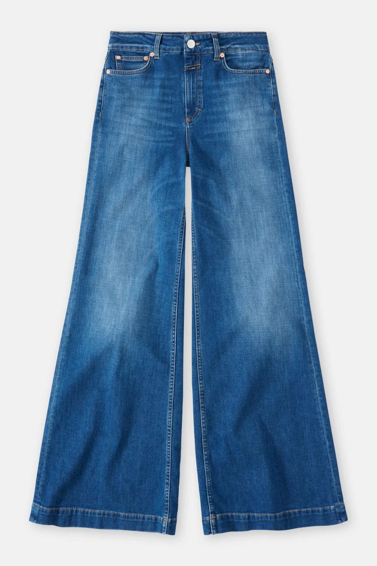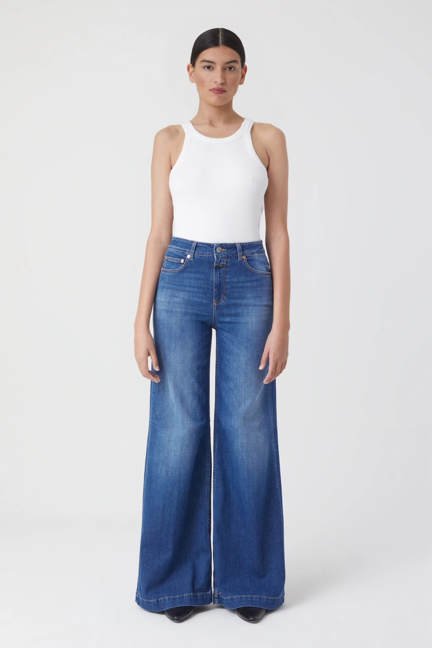 Style Glow-up im Wide Fit mit hohem Bund aus italienischem Comfort Stretch Denim von Candiani. Teil unserer nachhaltigen Denim-Linie A BETTER BLUE und zu 100 Prozent in Italien gefertigt.