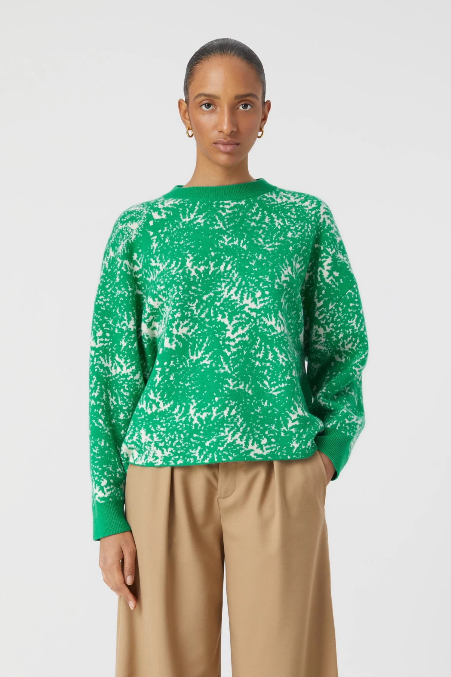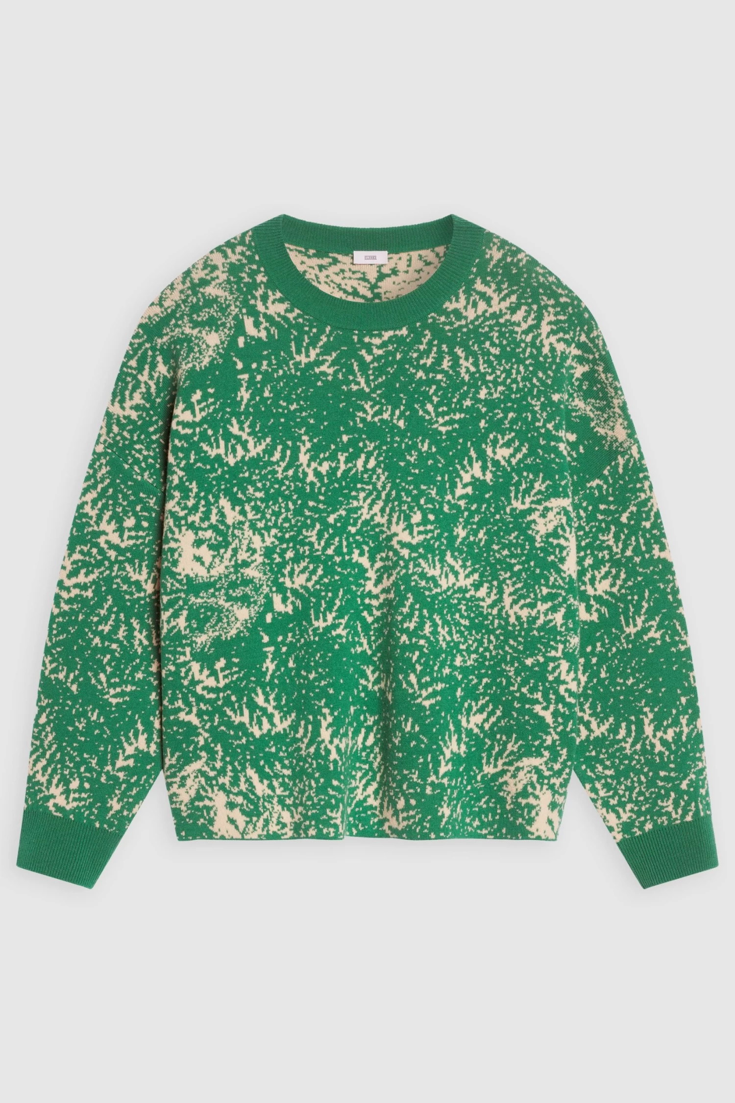 Rundhalspullover aus hochwertigem Merinowolle-Cashmere-Mix – weiche und leichte Qualität mit cleaner Oberflächenstruktur und leichtem Stretch-Anteil. Gestrickter Doppeljacquard mit Allover-Muster und Bünchen an Ärmel- und Saumabschluss.