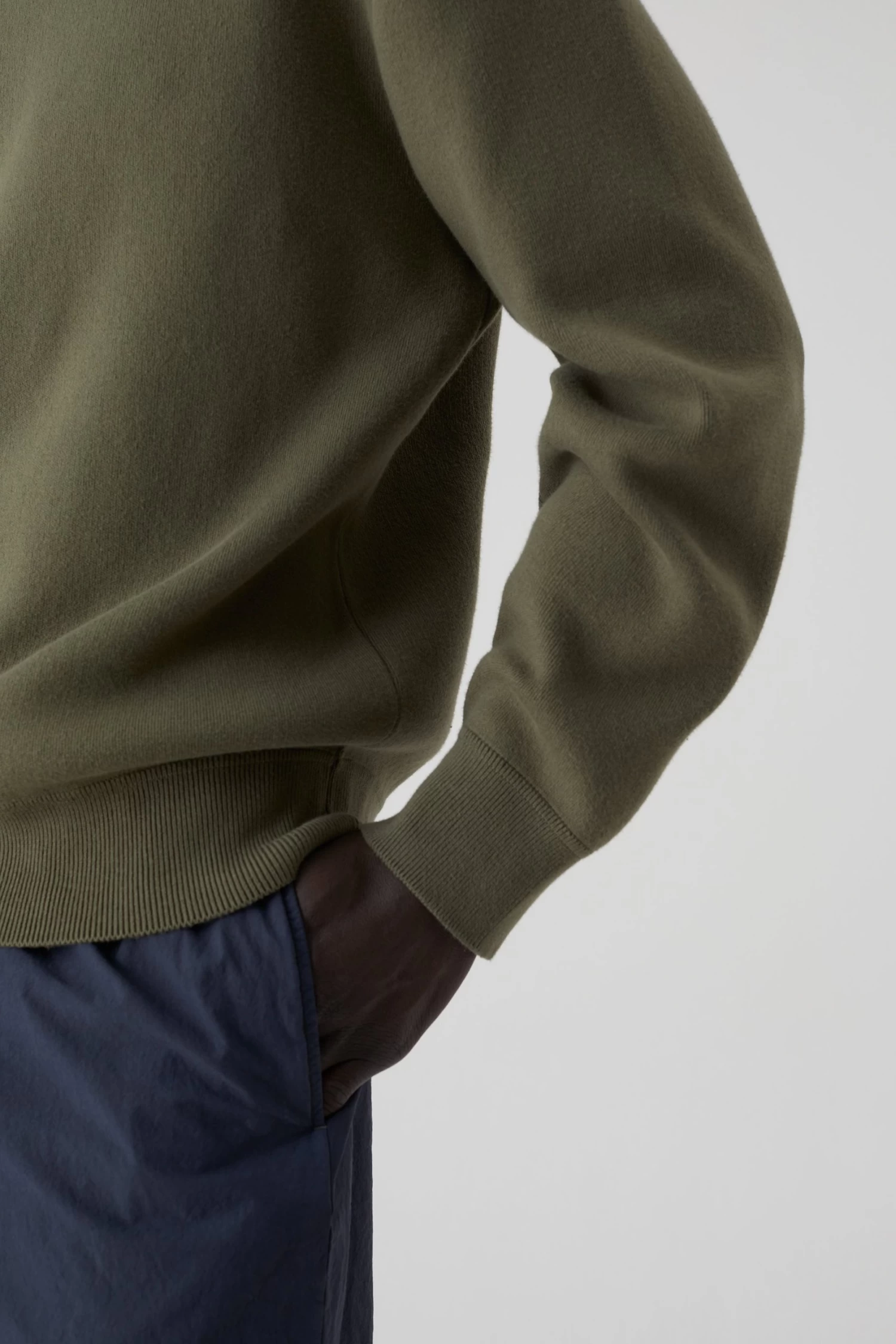 Basic Sweater, gestrickt aus reiner Bio-Baumwolle, mit geripptem Rundhalsausschnitt und Sweatshirt-Detail. Weicher, kompakter Griff, dazu Rippbündchen an Ärmel- und Saumabschluss.