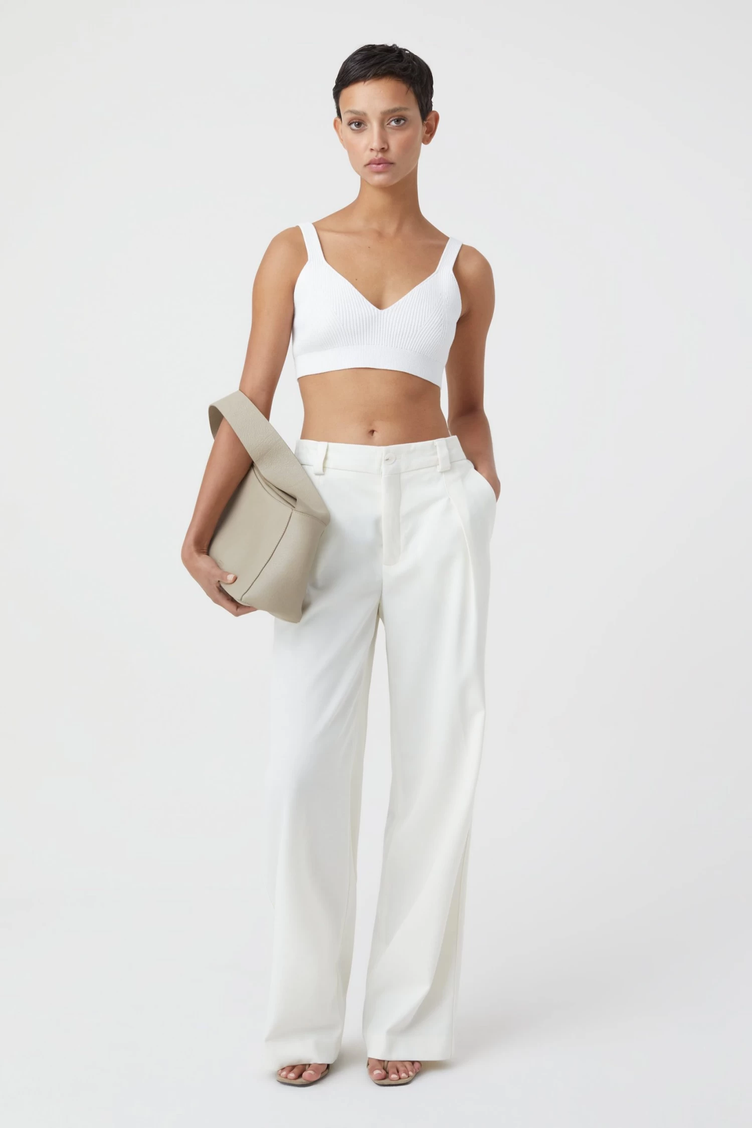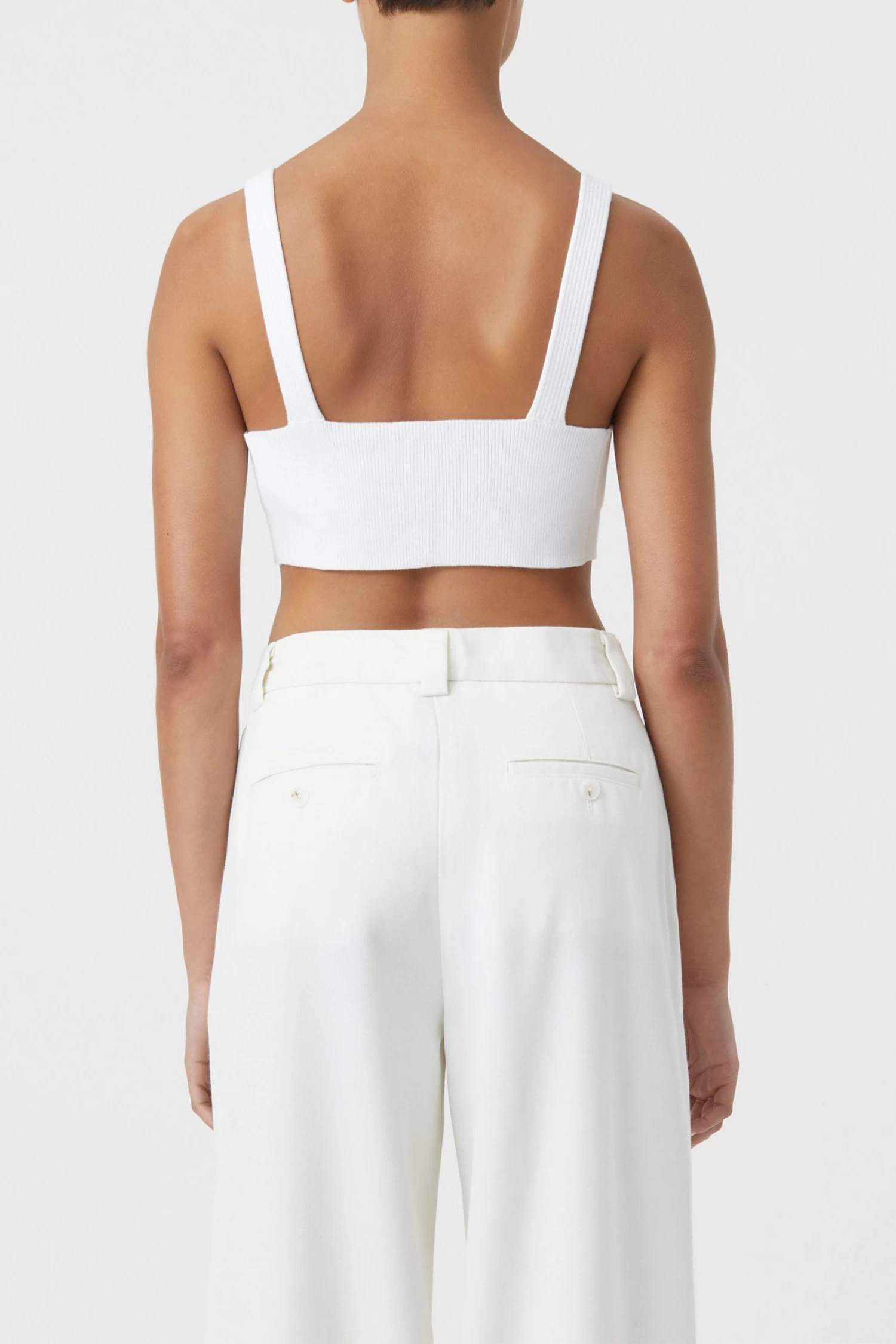 Top im elastischen Rippstrick aus reiner Bio-Baumwolle. Mit V-Ausschnitt, breiten Trägern und feiner geripptem Bündchen.