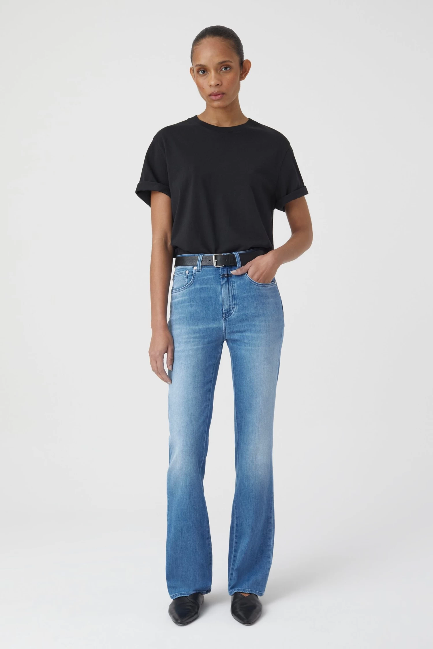 5-Pocket-Jeans im Slim Fit aus leichtem Candiani-Denim (10 oz.) mit sehr hoher Elastizität (bis zu 40%) und heller Destroyed-Waschung – zu 100 Prozent in Italien gefertigt.