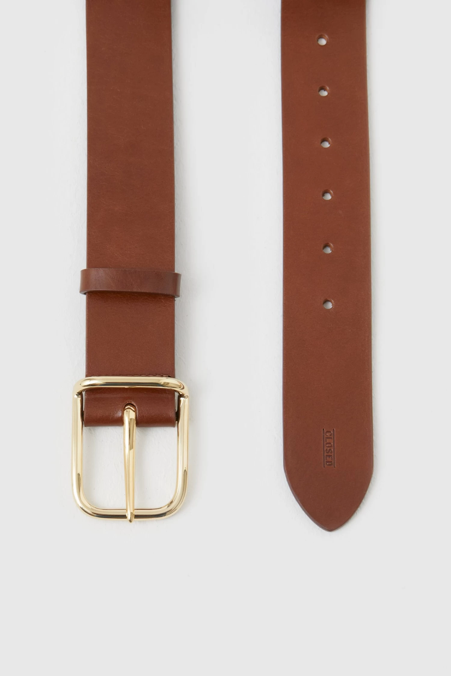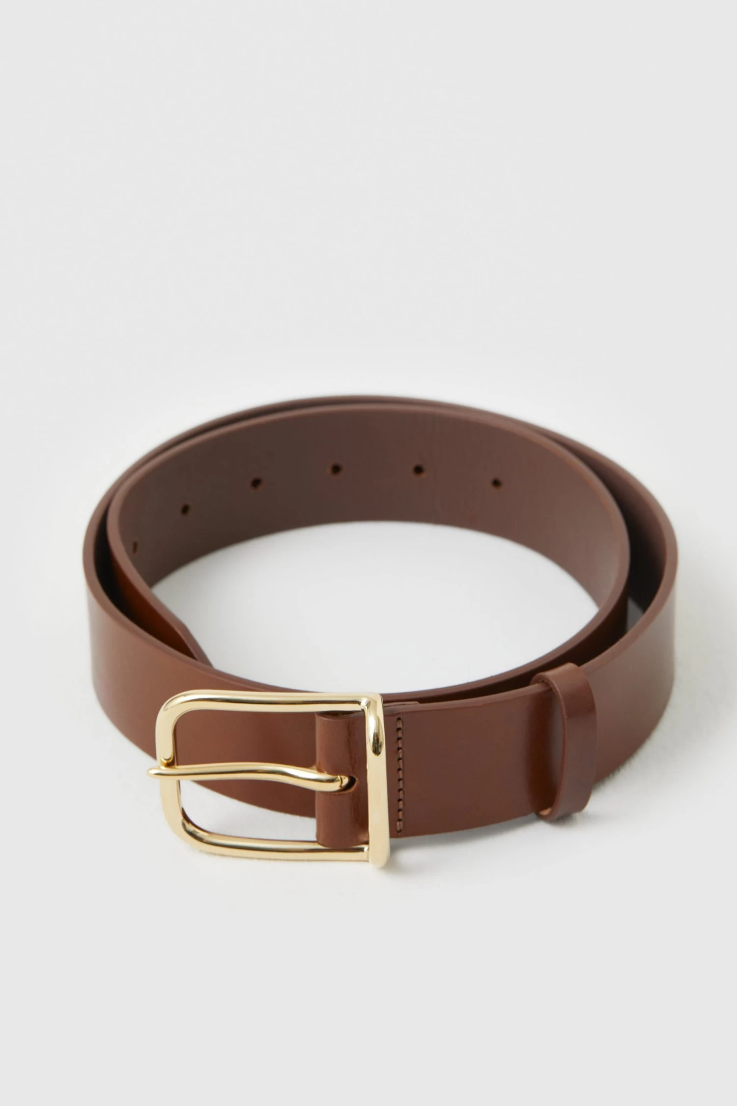 Gefertigt bei unseren Spezialist:innen von Cinturificio G&G in Italien: Breiter Gürtel aus pflanzlich gegerbtem Leder mit mehrfach handgefärbten und polierten Schnittkanten sowie mit Metallschließe im reduzierten und cleanen Look.