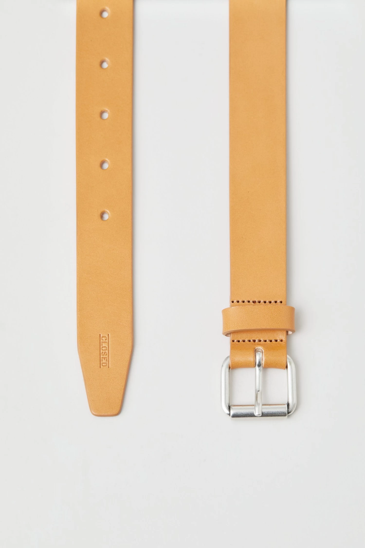 Gefertigt aus pflanzlich gegerbtem Leder mit mehrfach handgefärbten und polierten Schnittkanten: Gürtel mit C-Prägung und Dornschließe aus Metall.