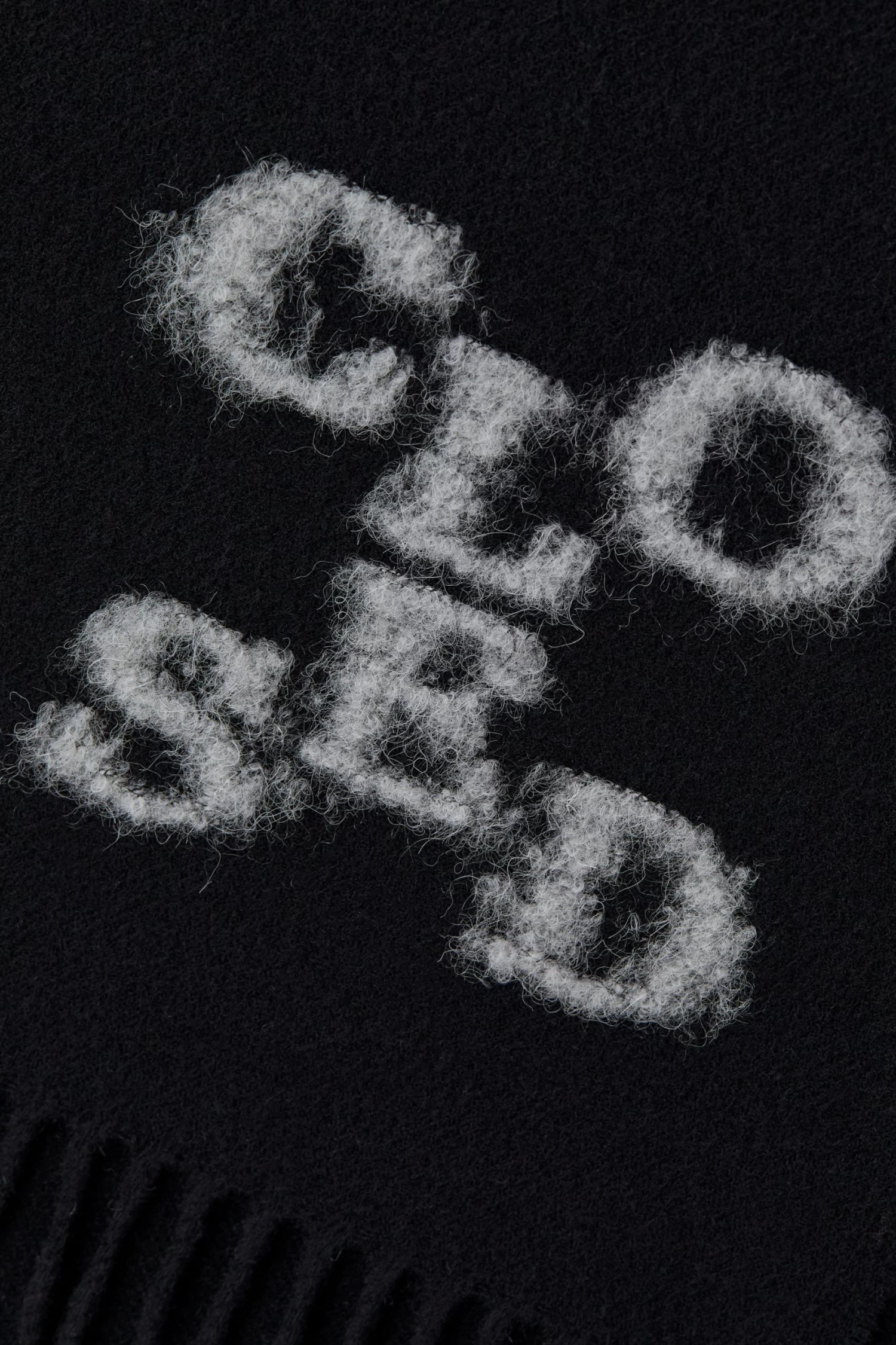 Aus einer soften Woll-Qualität in Italien hergestellt: Unser Logo-Schal im minimalistischen Design mit Fransenkanten an den Enden.