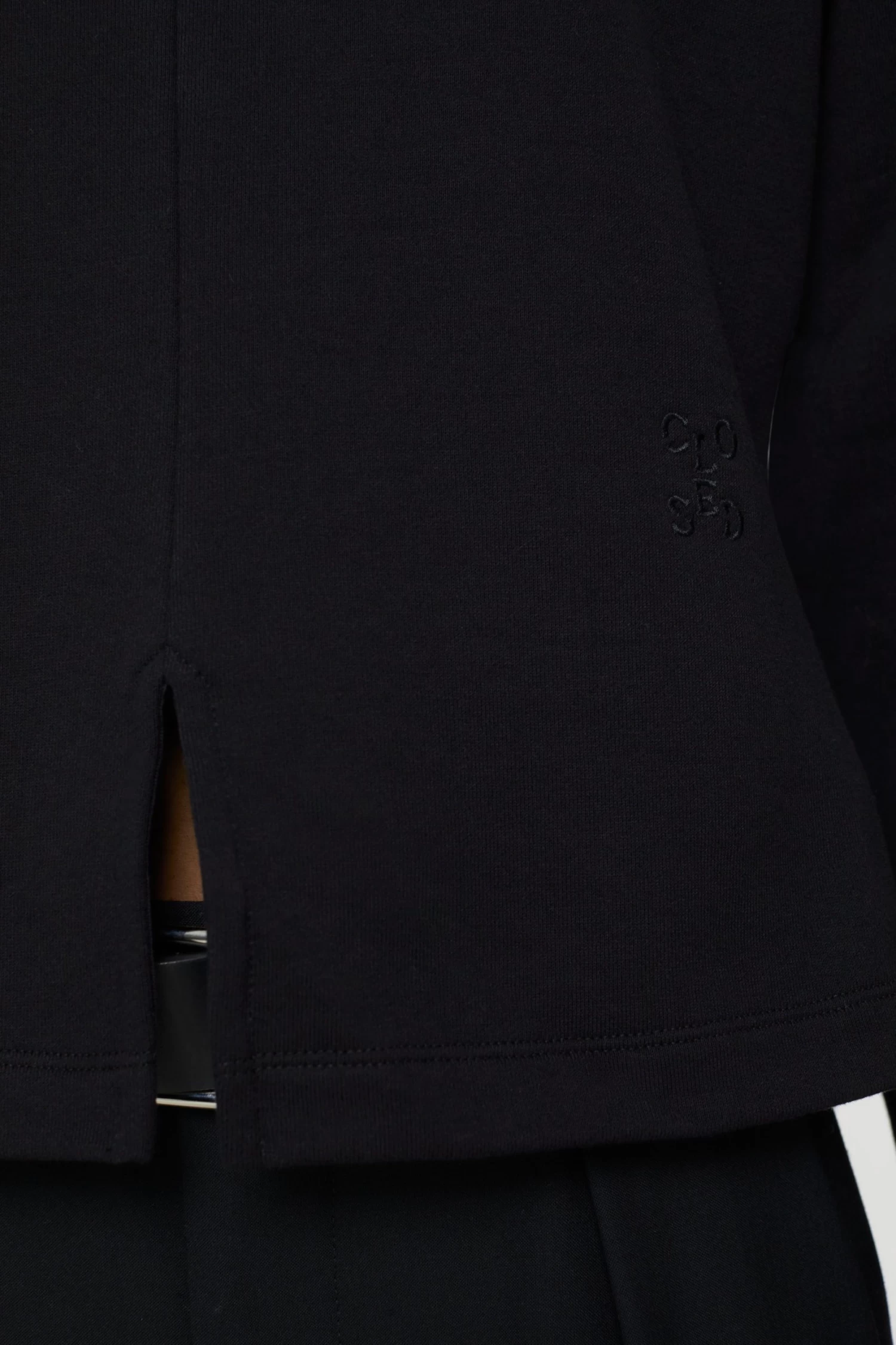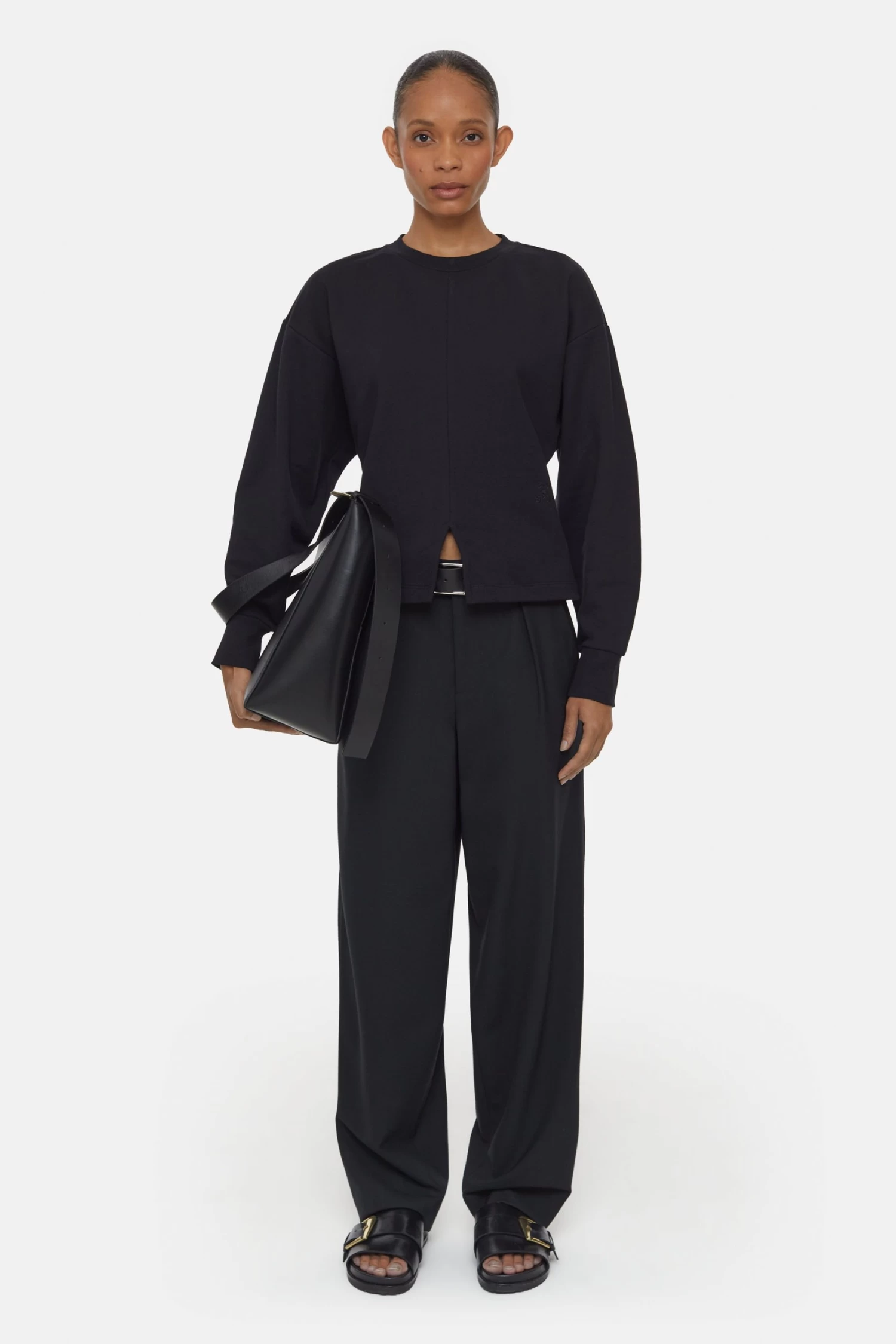Dieses aus reiner Baumwolle bestehende Longsleeve aus weichem Jersey kommt mit einem geripptem Rundhalsausschnitt, leicht überschnittenen Schultern und Rippbündchen am Ärmel. Komplettiert wird das eng anliegende Crewneck mit einer filigranen Logo-Stickerei und einem auffälligen Schlitz am Saumabschluss.