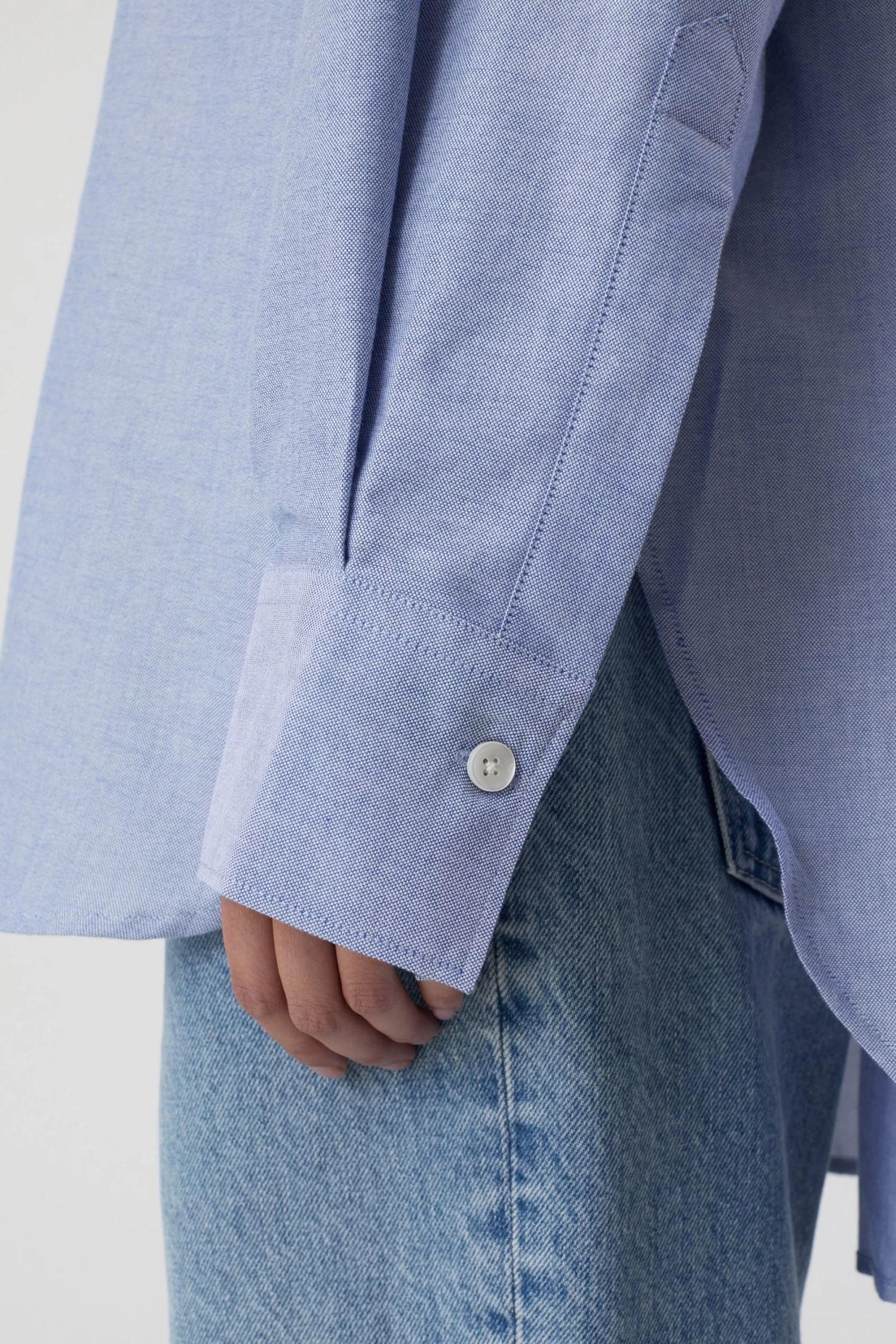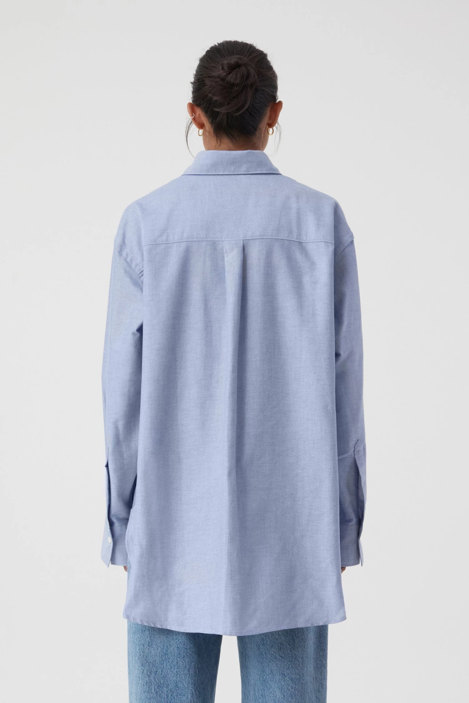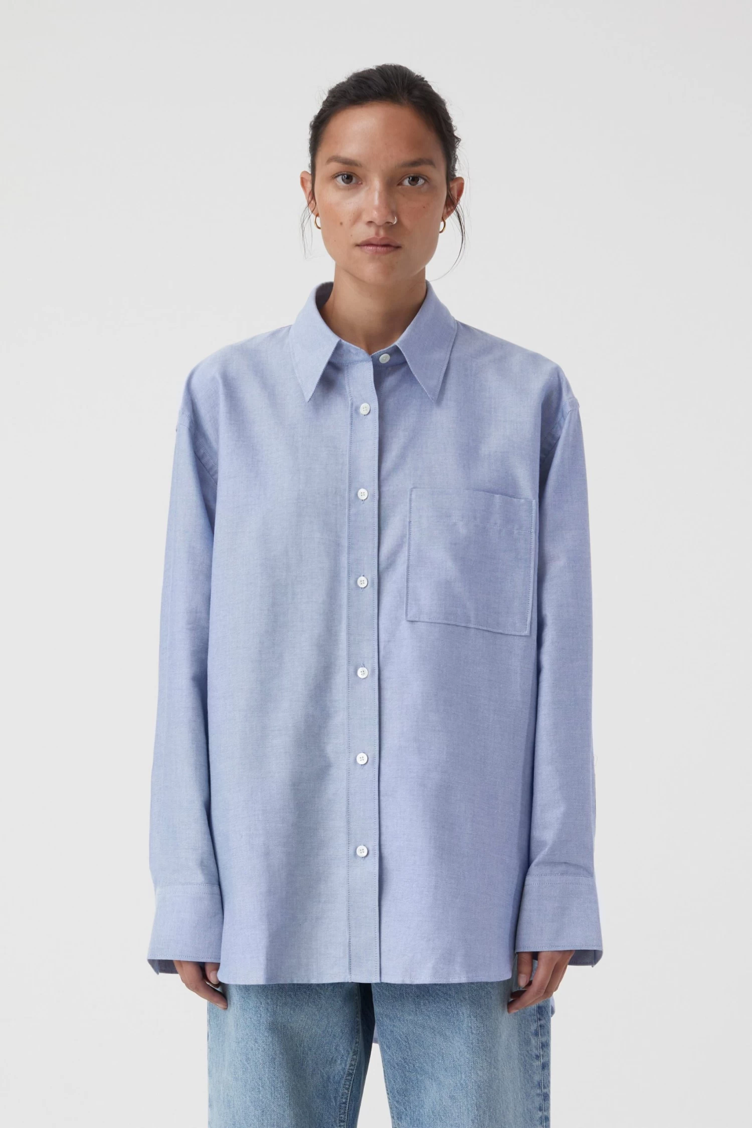 Diese Oxford-Hemdbluse mit lockerem Schnitt wurde aus reiner Bio-Baumwolle in Portugal gefertigt und hat eine Brusttasche, eine durchgehende Knopfleiste und einen gerundeten Saum. Auf der Rückseite ist sie länger geschnitten.