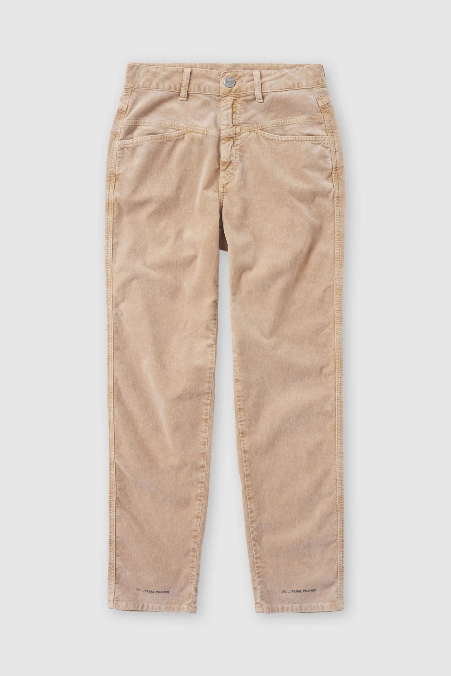 Gefertigt aus italienischem Samt – Mischung aus Bio-Baumwolle, Baumwolle und Tencel™ mit weicher Haptik und Stretch-Anteil. Das abschließende Garment-Dye-Finish verleiht der Hose einen dezenten Used-Look mit helleren Effekten an den Nähten: Style Pedal Pusher im Closed Heritage Fit mit hohem Bund.
