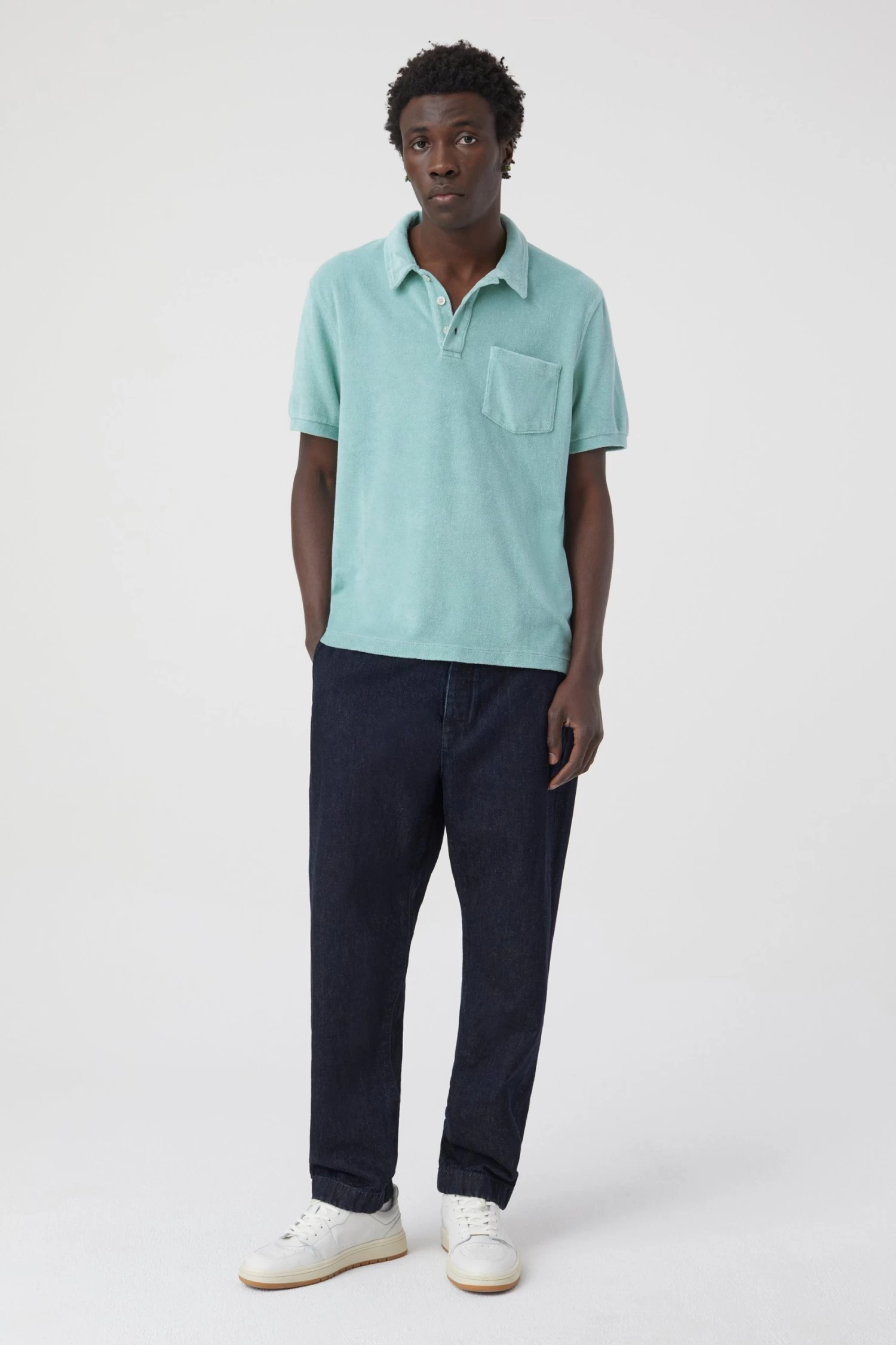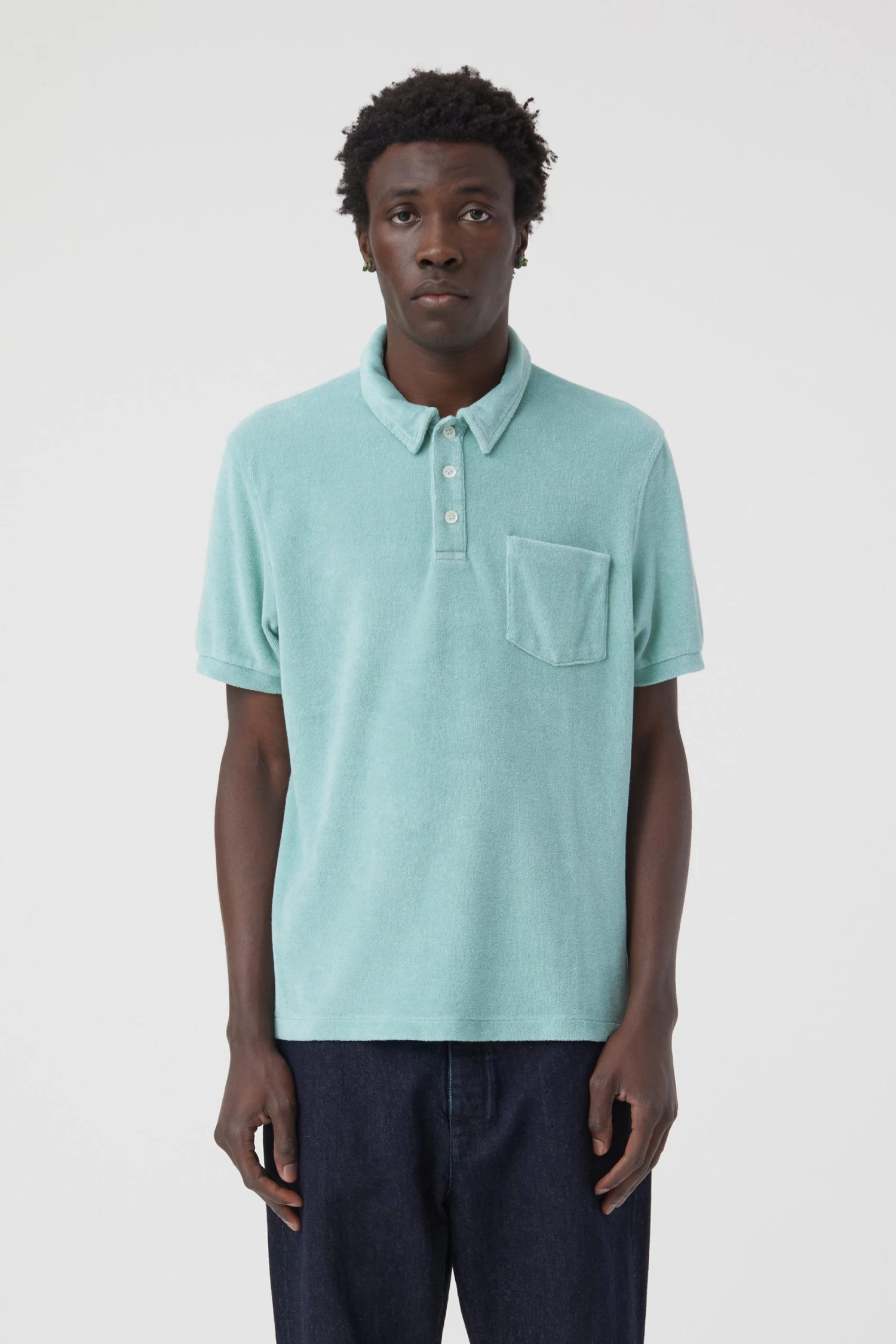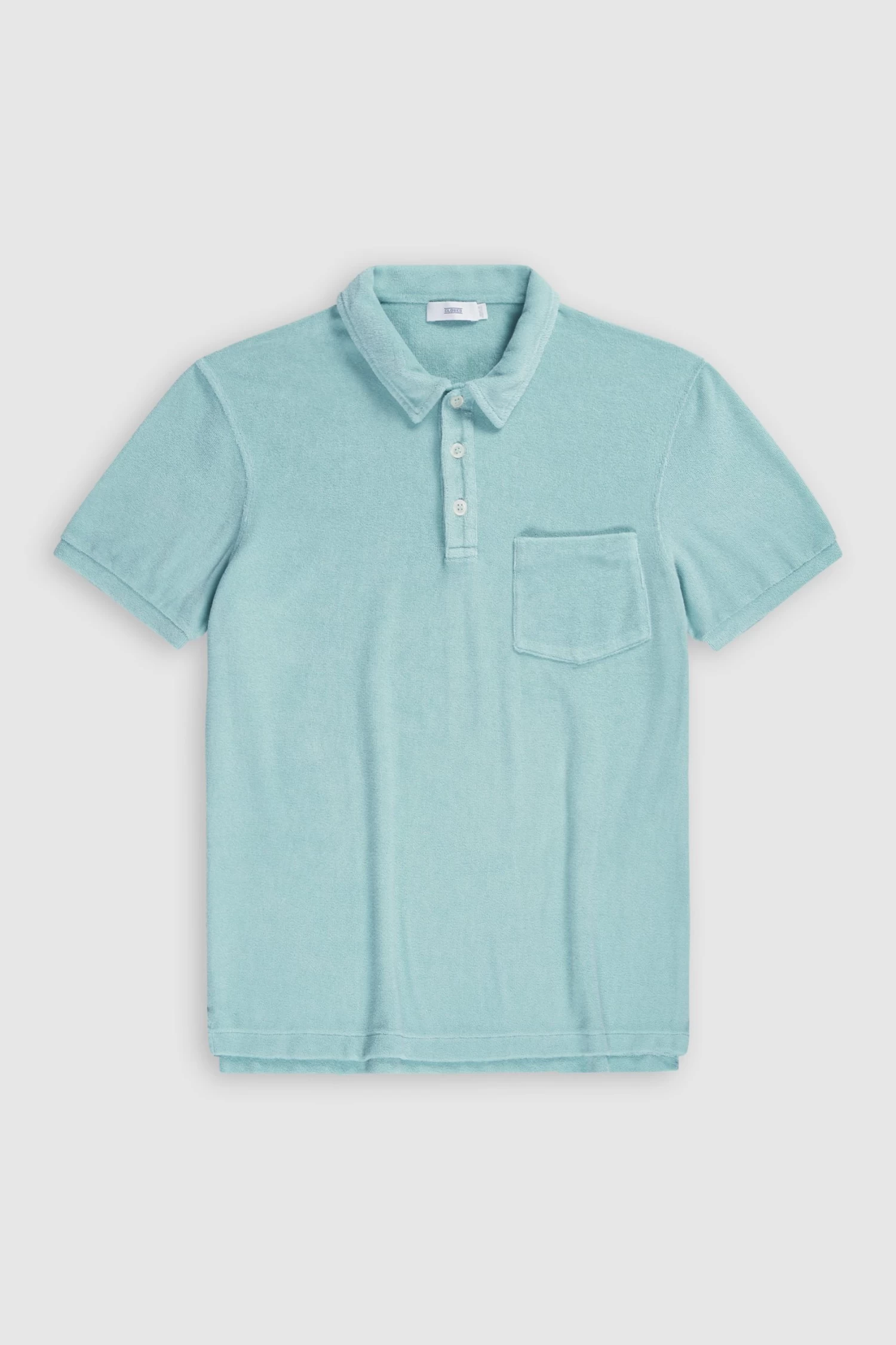 Hergestellt aus weichem Frotteestoff: Poloshirt mit Knopfleiste, Perlmuttknöpfen, Brusttasche und Seitenschlitzen.