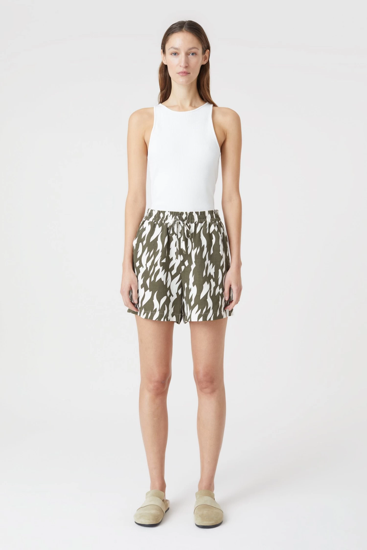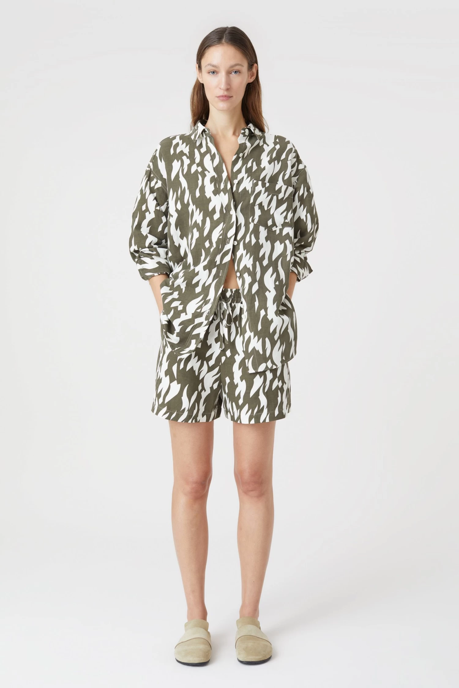 Der weich fallende Seide-Leinen-Mix verleiht diesen Shorts ein angenehmes Tragegefühl. Bedruckt wurde der leichte Stoff mit einem exklusiv für uns entwickelten Print. Die Shorts haben einen Stretchbund mit Tunnelzug und seitliche Eingrifftaschen.
