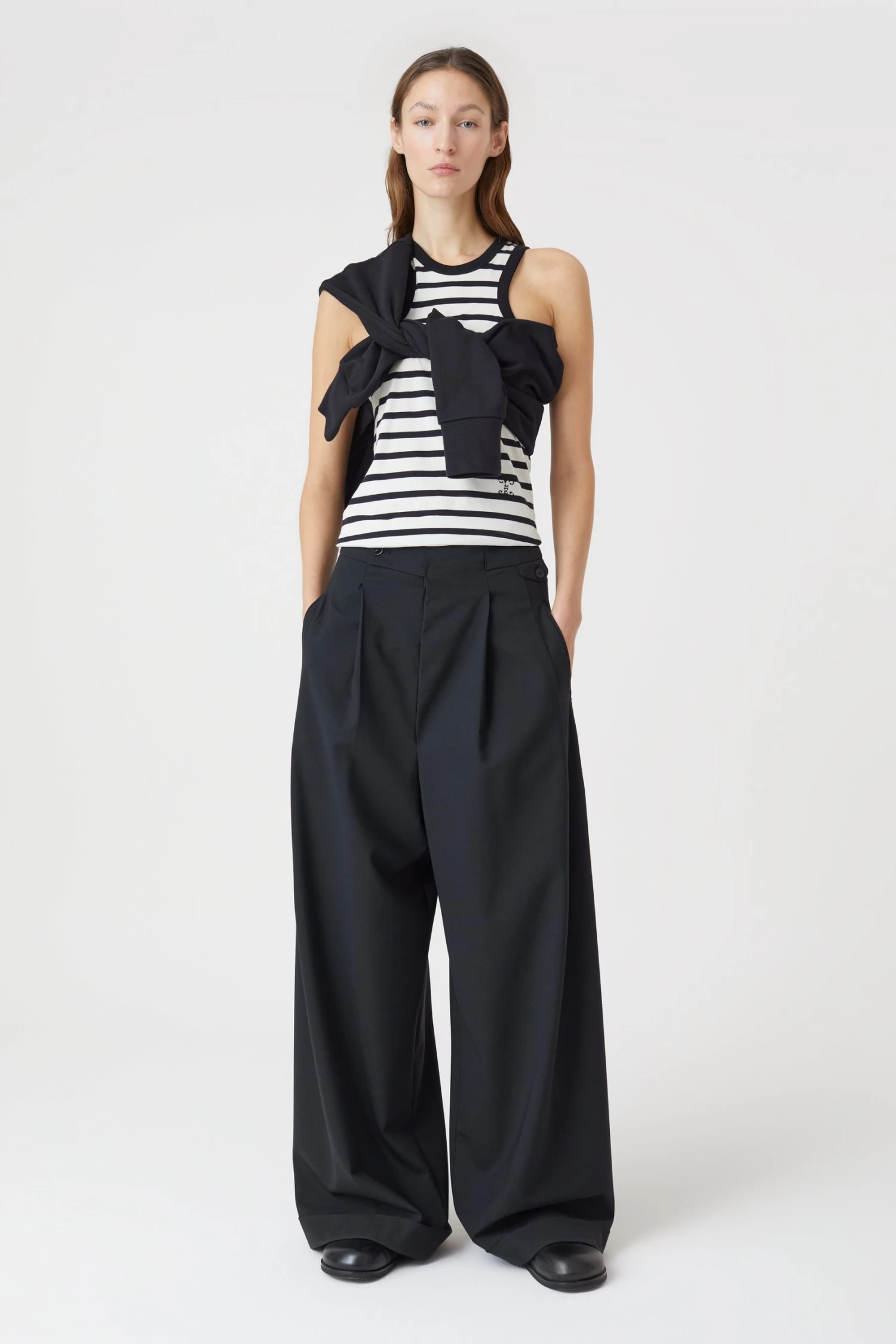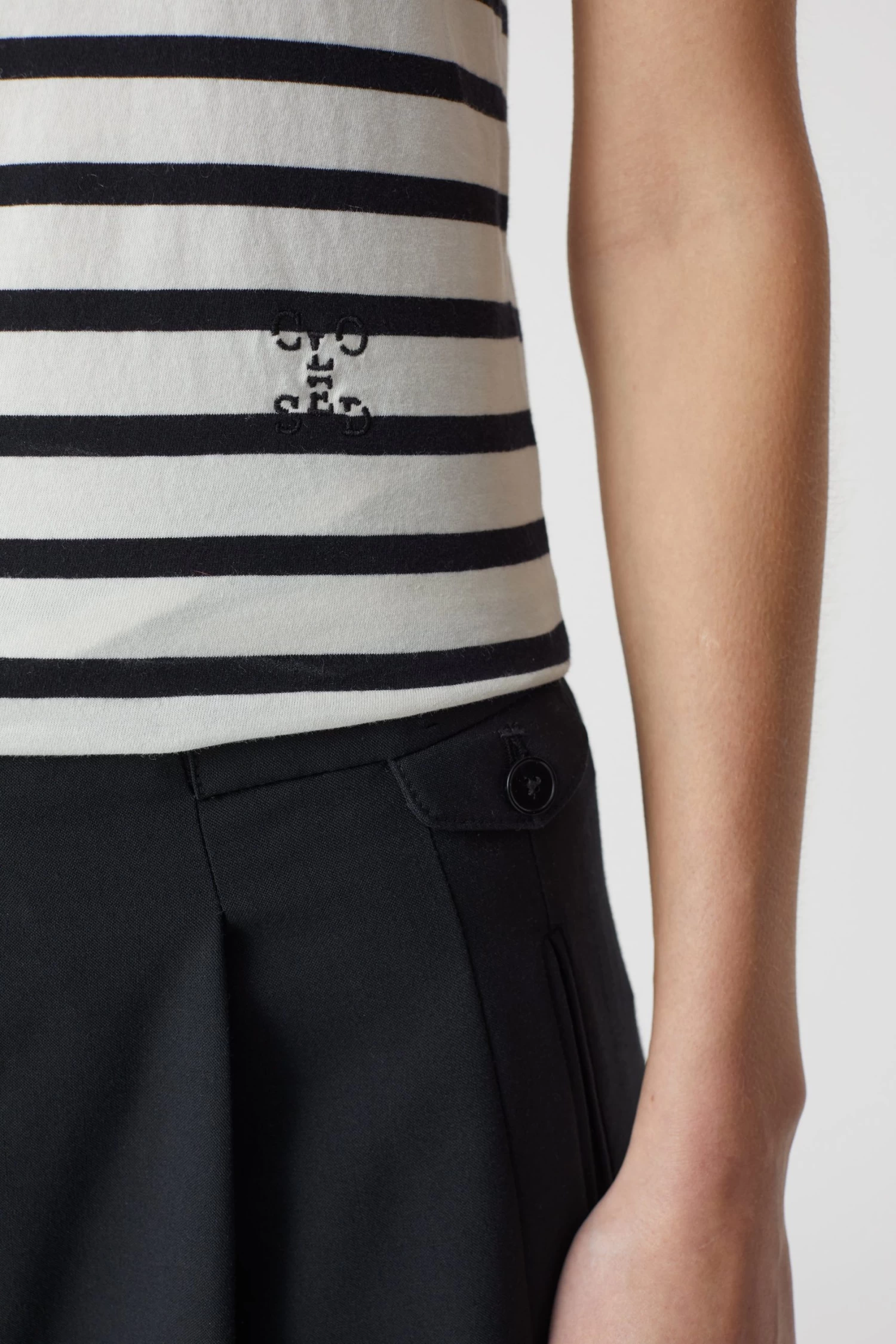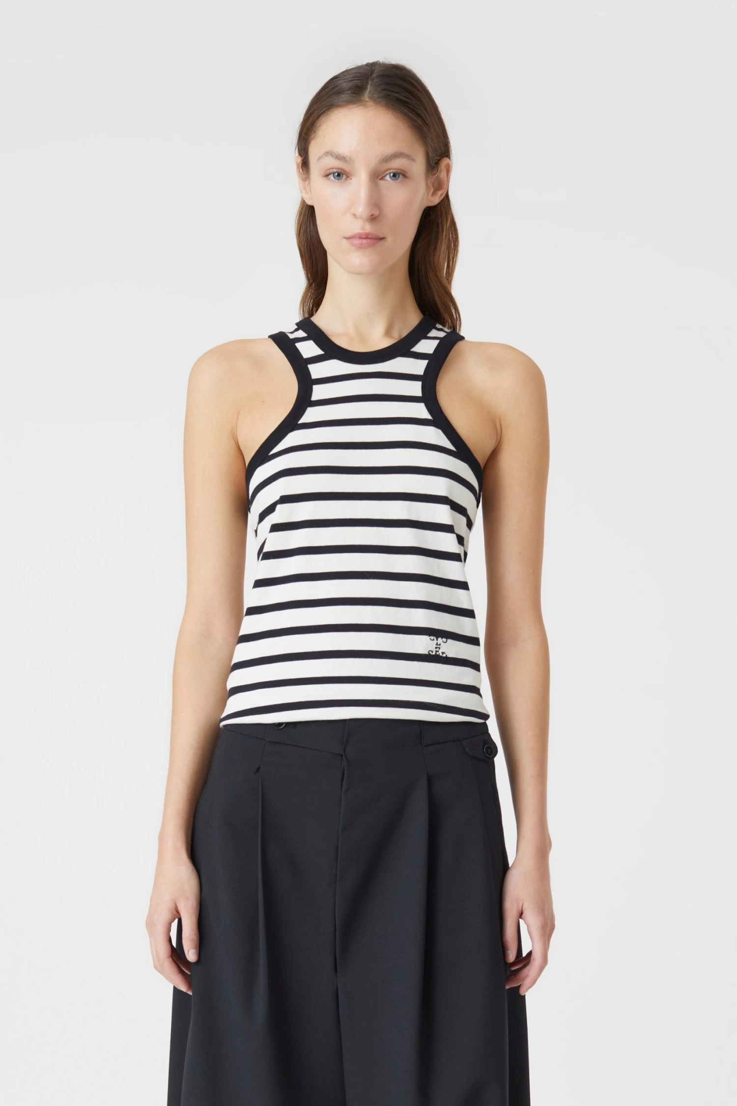 Aus reiner Bio-Baumwolle gefertigtes Racer Tanktop mit körpernahem Schnitt. Mit Streifen, Monogramm-Stitching und geradem Saumabschluss.