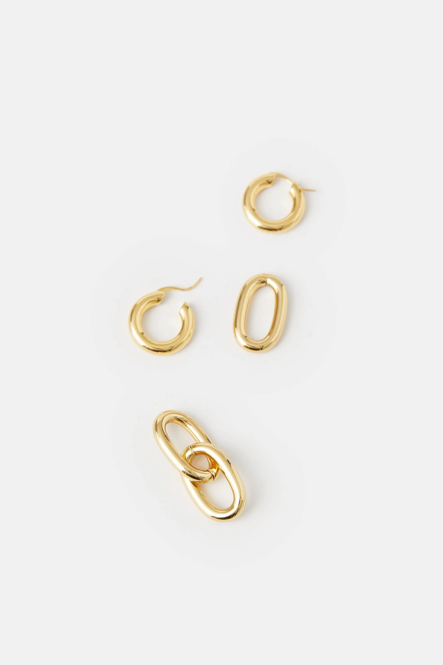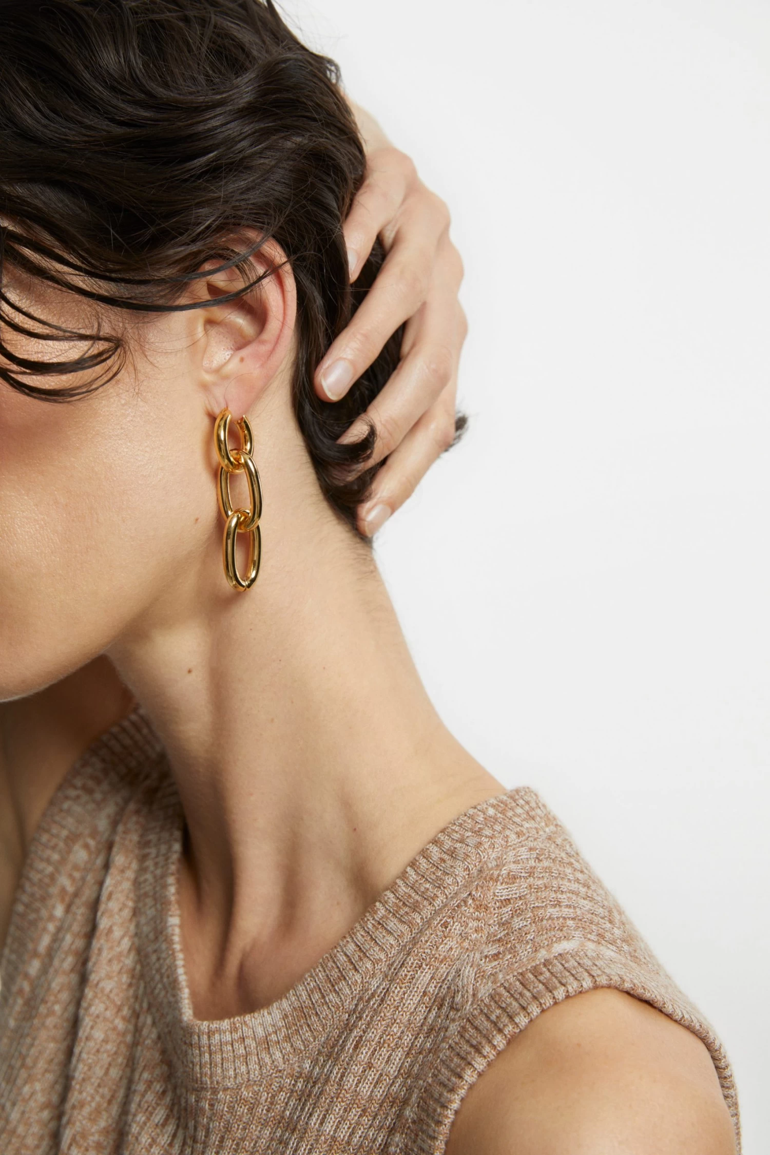 Handgefertigte Ohrringe des Schmucklabels Romantico Romantico aus 18 Karat vergoldetem Metall. Der asymmetrische Look ist inspiriert von Vintage-Schmuckstücken. Gefertigt in einem kleinen italienischen Handwerksbetrieb.