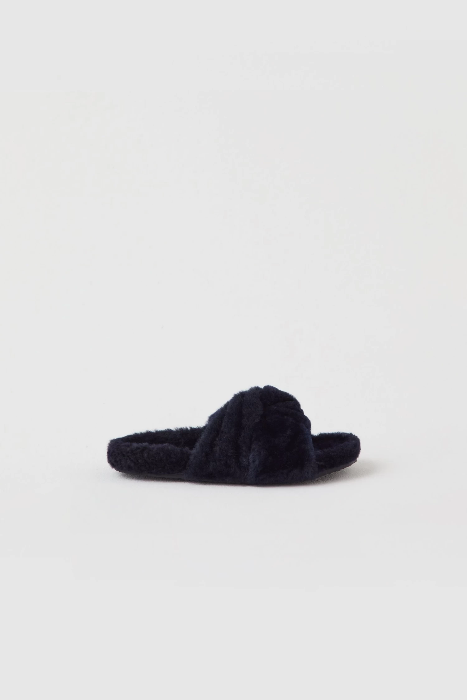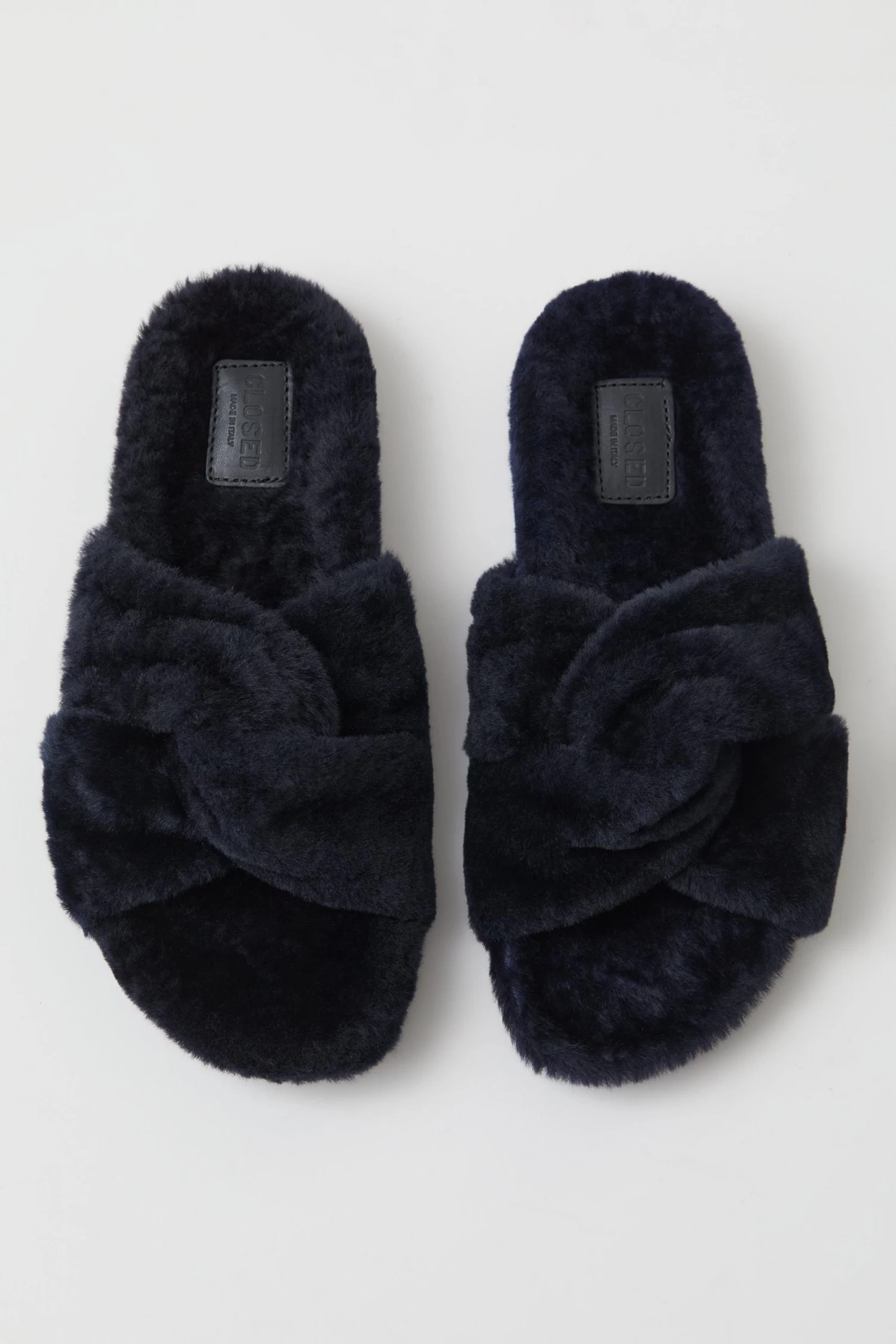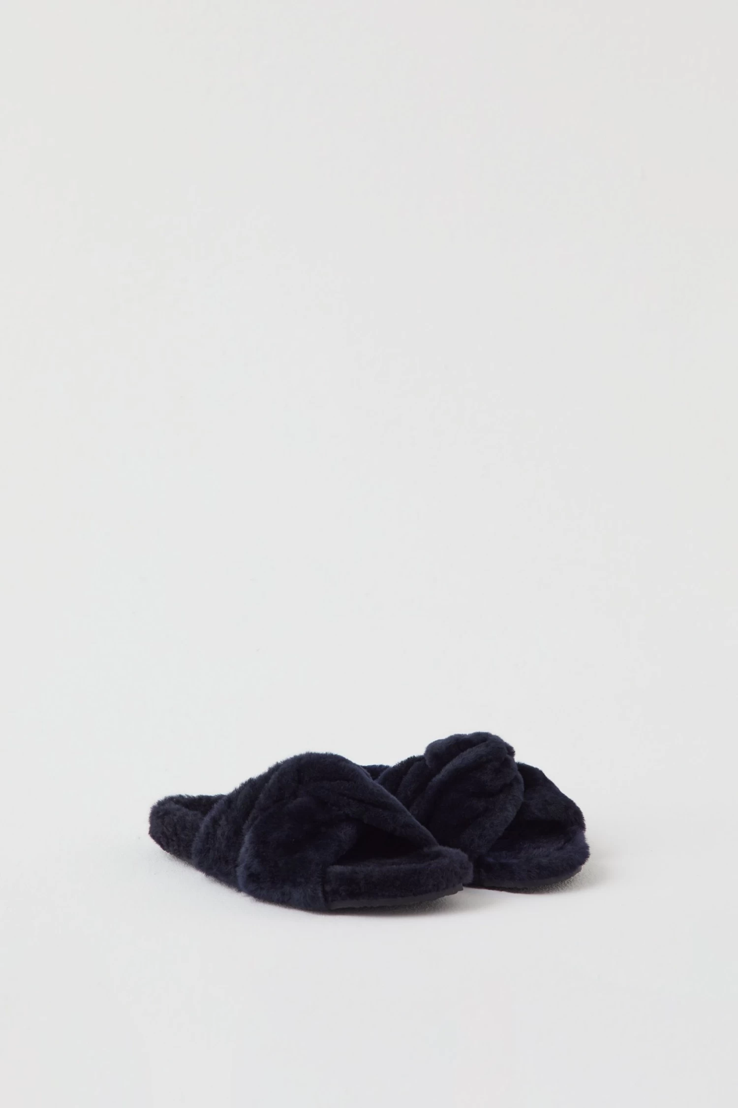 Zu 100 Prozent made in Italy: Superweiche Slipper Sandals aus Lammfell mit Knoten-Detail, überzogener Innensohle und gekreppter Sohle.