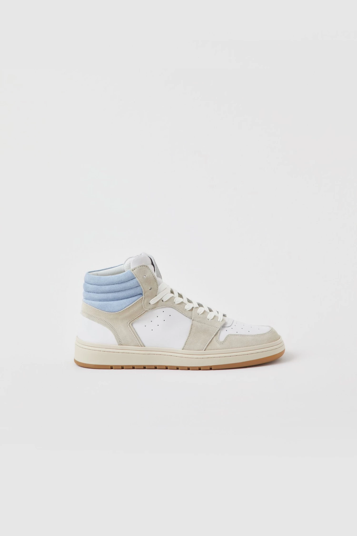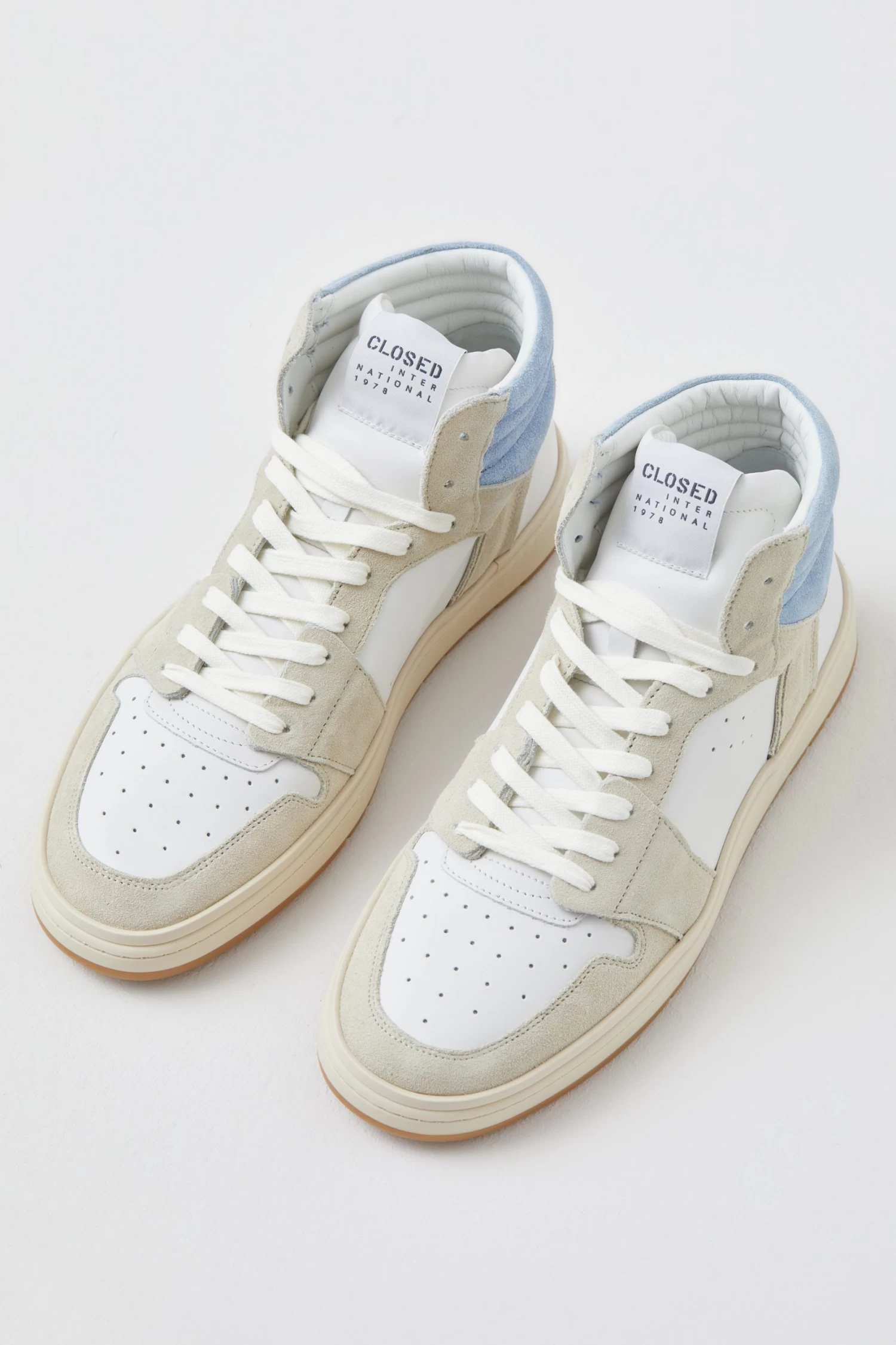 Mix aus Glatt- und Veloursleder in Colour-Blocking-Optik: High Top Sneakers mit Logo-Badge auf der Zunge und weicher Innensohle. Zu 100 Prozent in Italien gefertigt.