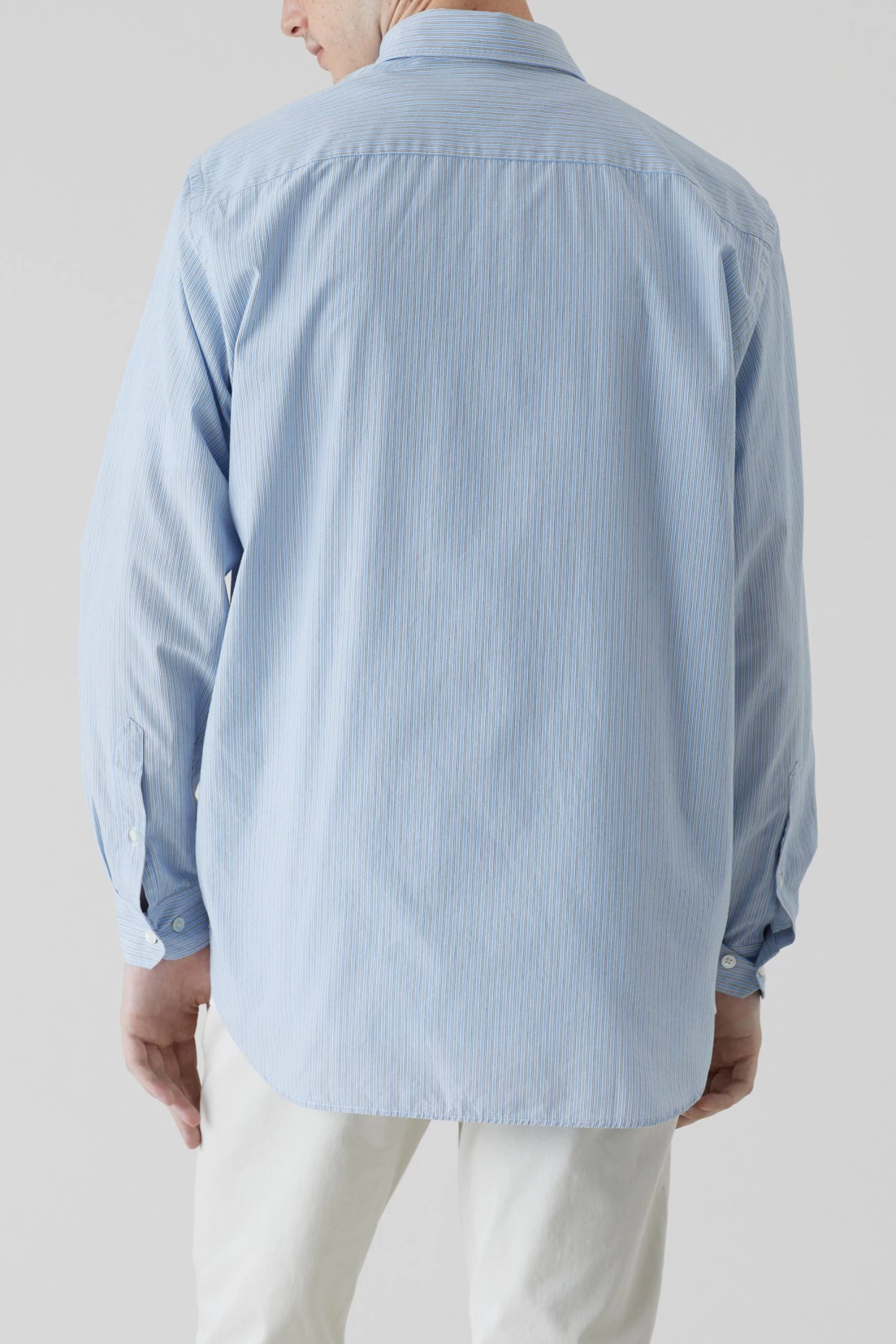 Hemd aus weicher und leichter Bio-Baumwollqualität mit gewebten Streifen: Relaxed Fit mit Kontrast-Stitching, Brusttasche, Manschetten, Perlmuttknöpfen und gerundetem Saum.