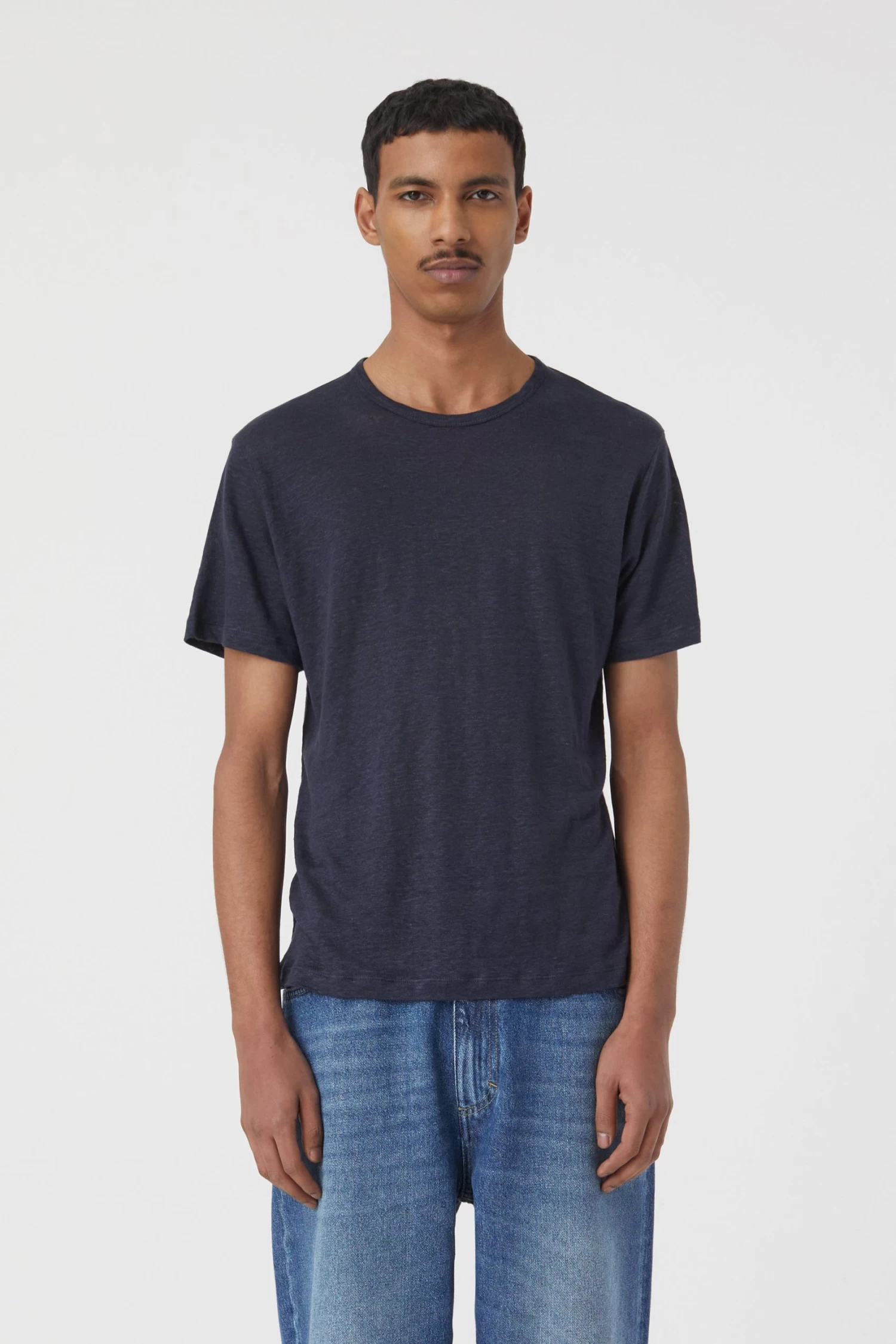 T-Shirt aus Leinen mit leicht strukturierter Oberfläche. Rundhalsausschnitt, leicht überschnittene Schulter und gerader Saumabschluss.