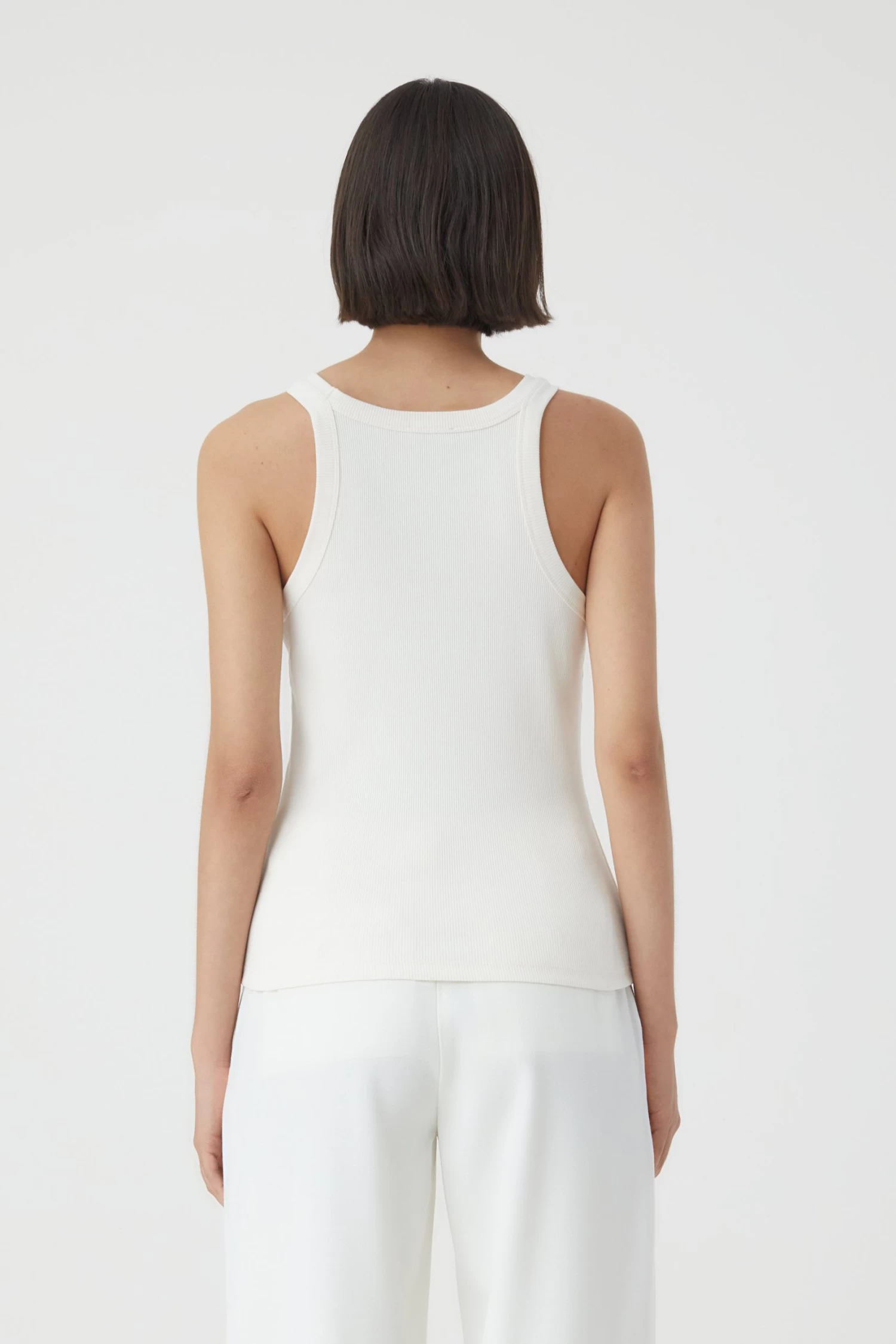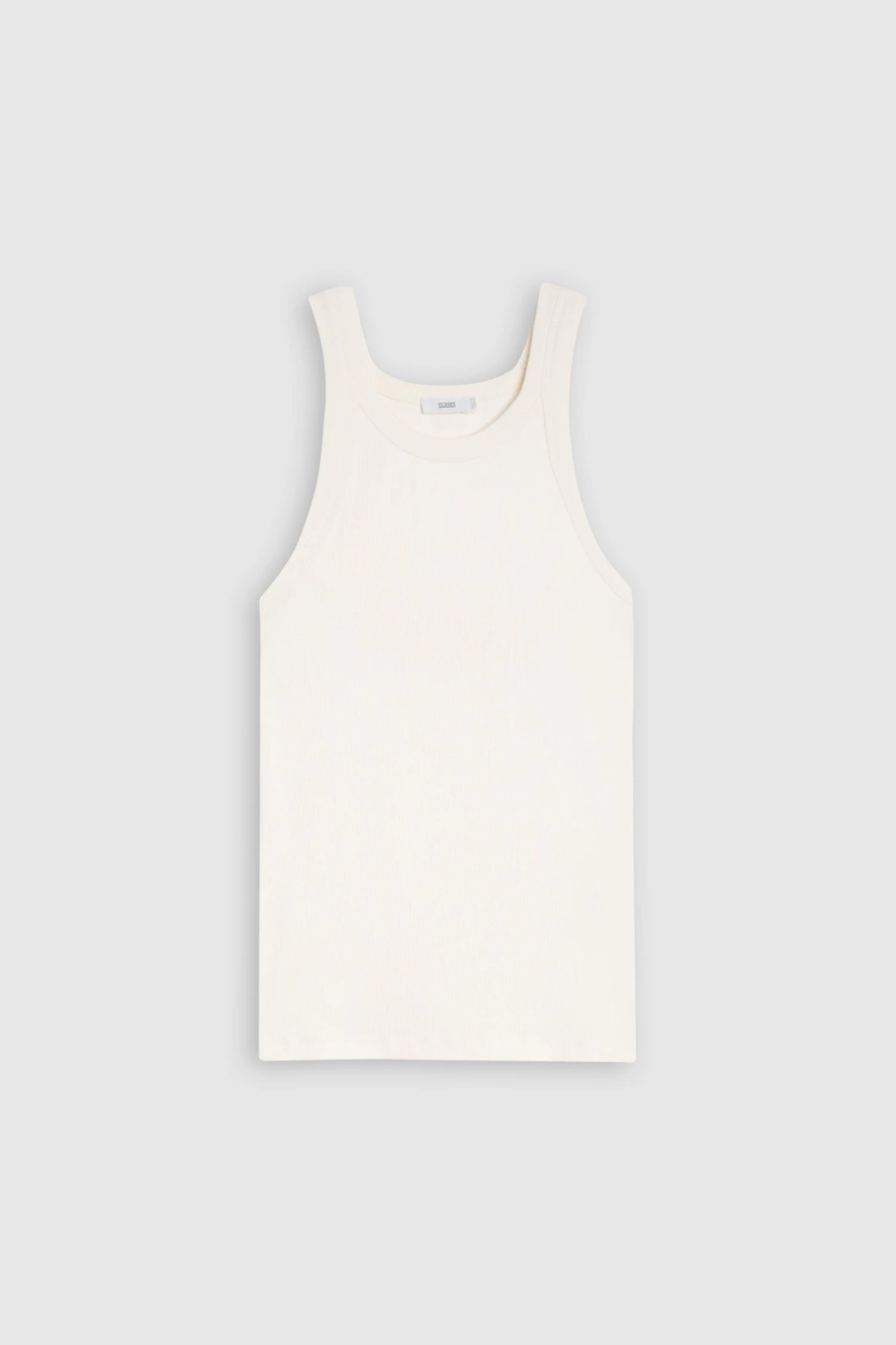 Tanktop im Slim Fit aus Rippjersey, hergestellt aus Bio-Baumwolle mit Stretch-Anteil. Mit Rundhalsausschnitt und geradem Saumabschluss.