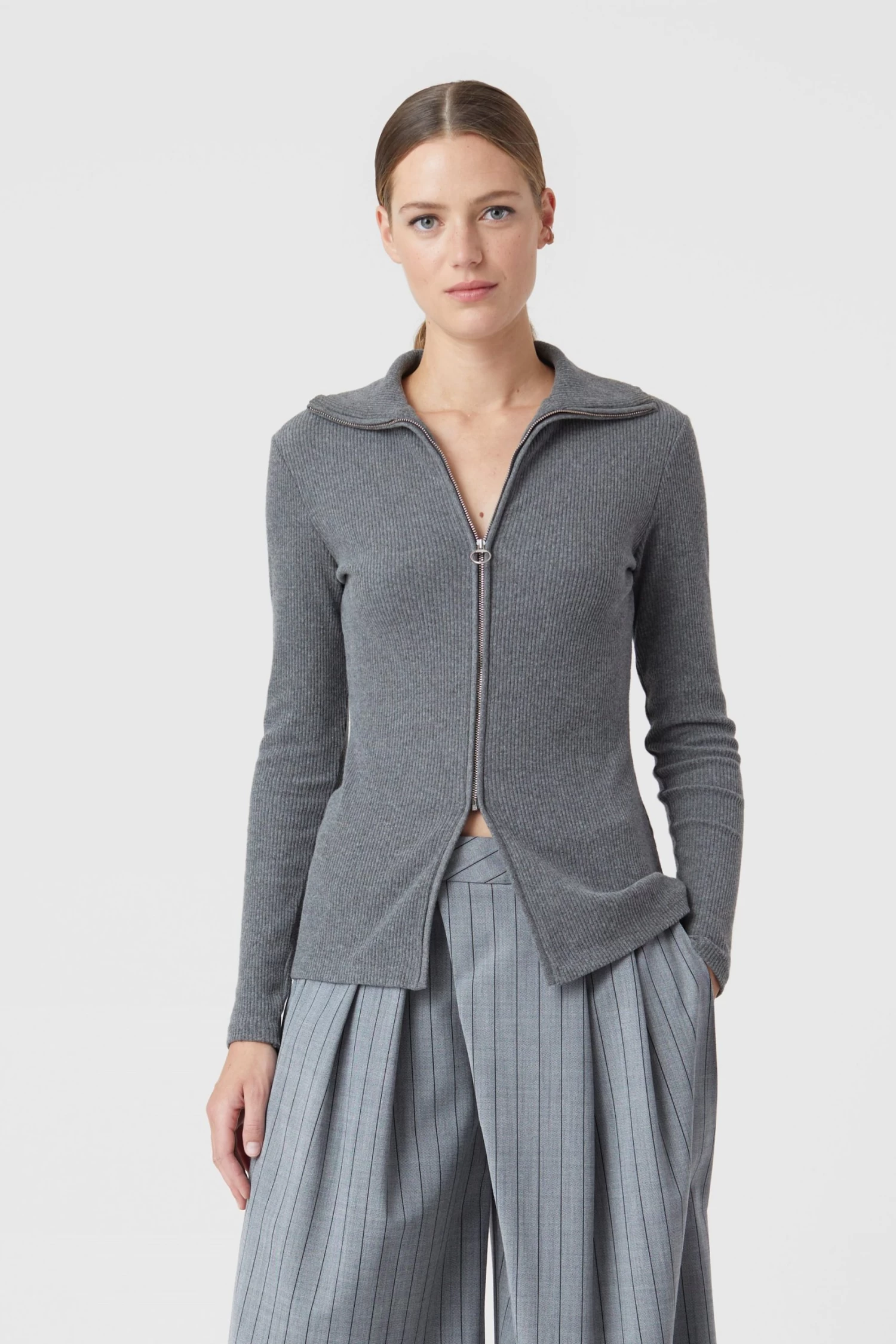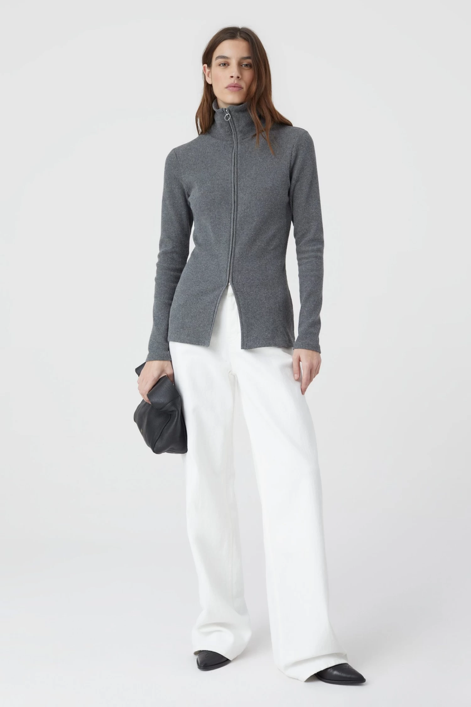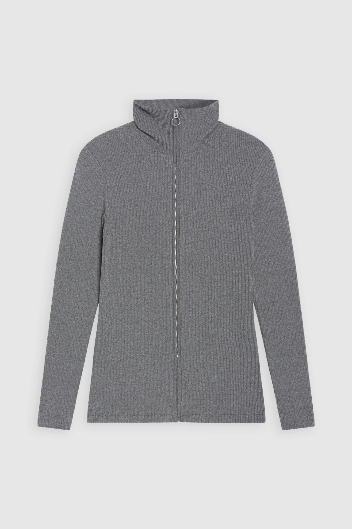 Lang geschnittener Cardigan mit Rollkragen im Feinstrick mit leichtem Stretch-Anteil – hergestellt in Portugal. Regular Fit mit Logo-Zipper und geradem Saumabschluss.