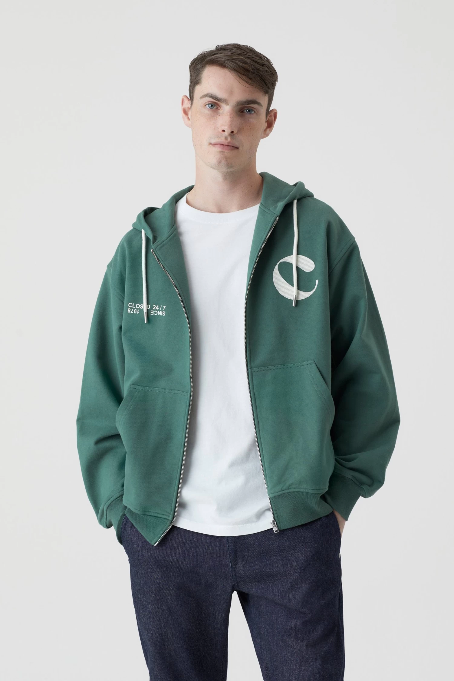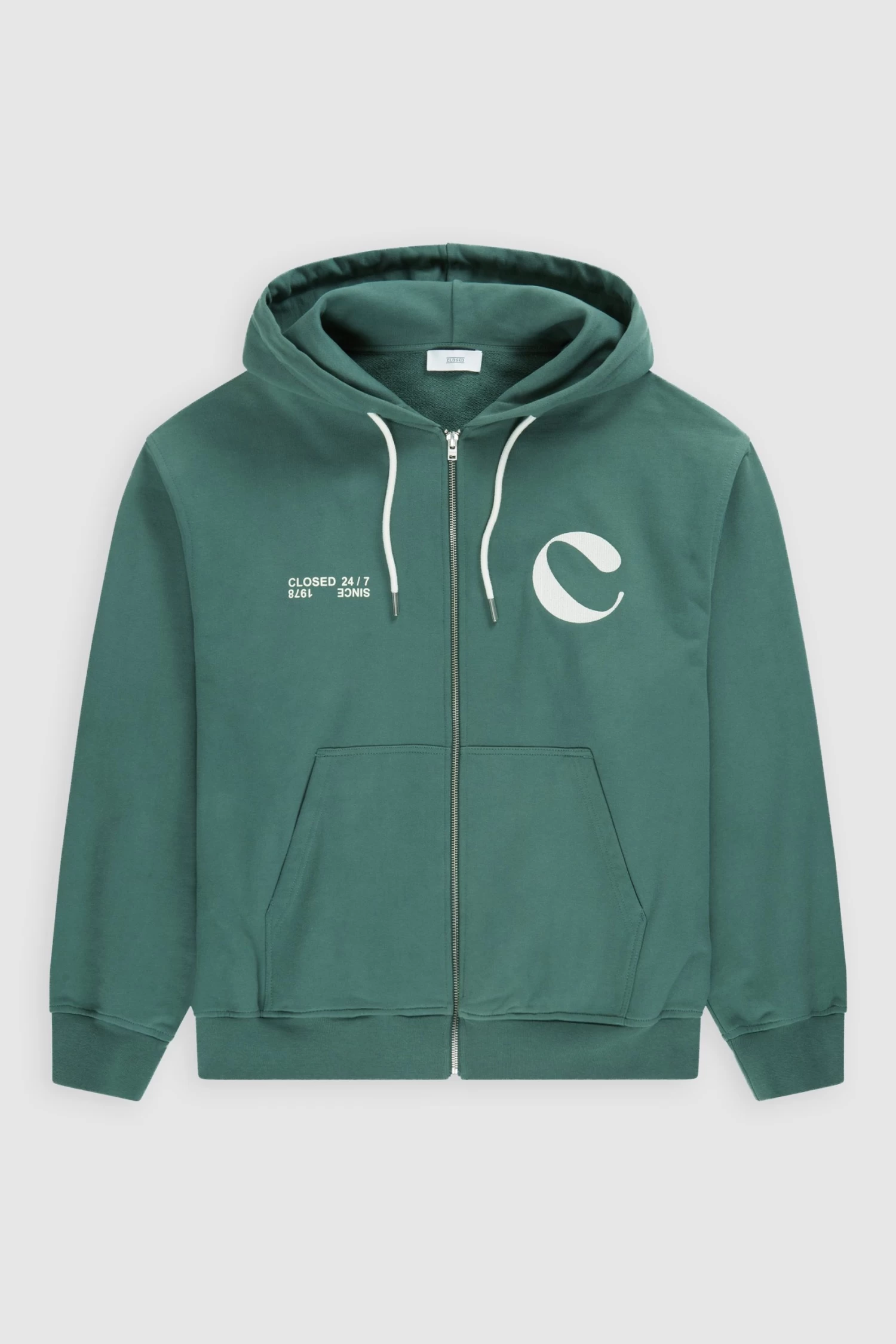 Regular Fit aus kompakter Qualität aus reiner Bio-Baumwolle. Mit Print und C-Stickerei auf der Vorderseite, sowie gefütterter Kapuze mit Tunnelzug. Metall-Zipper, Kängurutasche und Bündchen an den Abschlüssen.